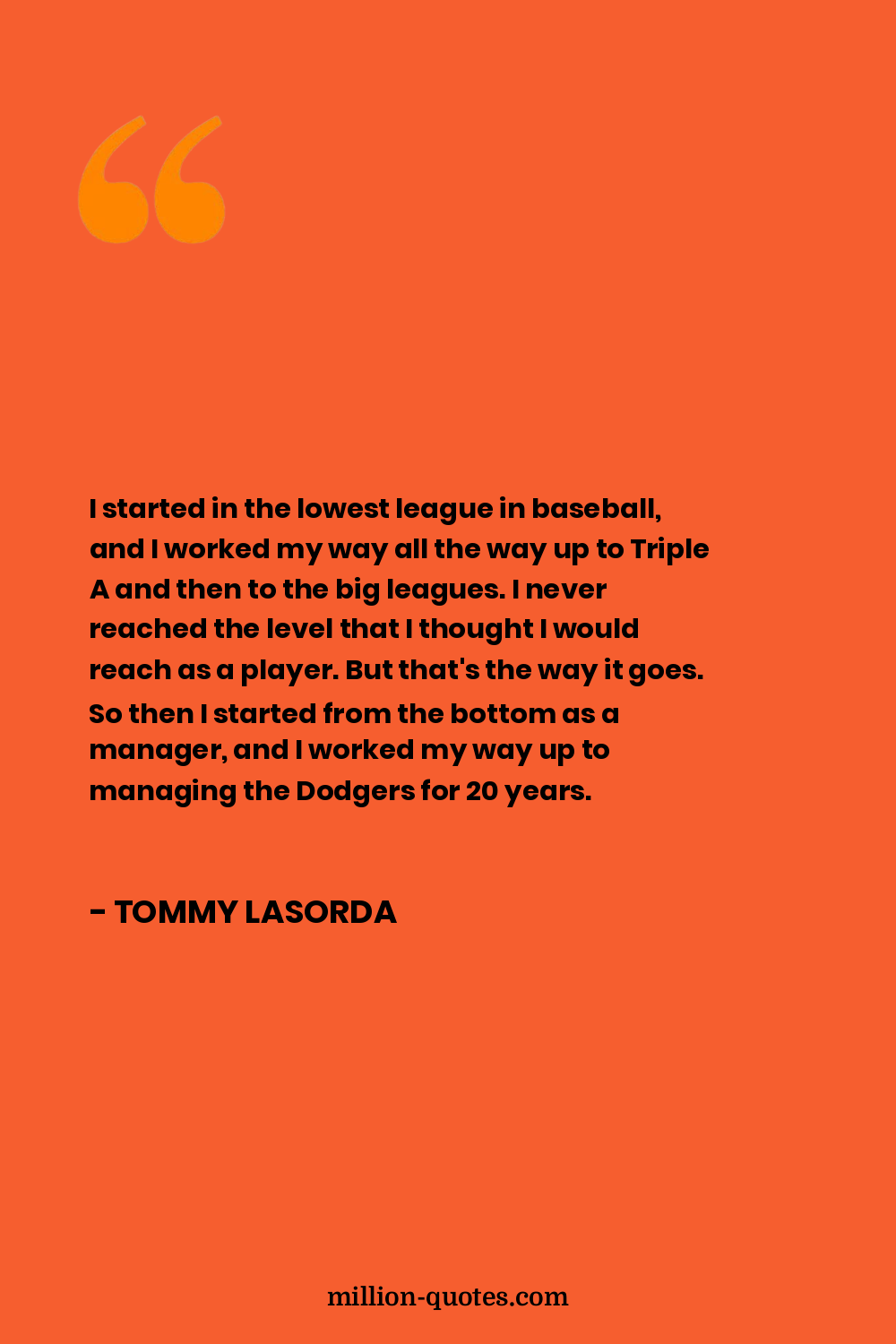 I started in the lowest league in baseball, and I worked my way all the way up to Triple A and then to the big leagues. I never reached the level that I thought I would reach as a player. But that's the way it goes. So then I started from the bottom as a manager, and I worked my way up to managing the Dodgers for 20 years.