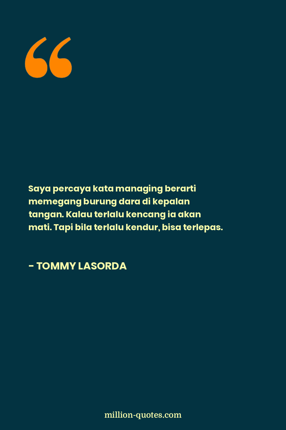 Saya percaya kata managing berarti memegang burung dara di kepalan tangan. Kalau terlalu kencang ia akan mati. Tapi bila terlalu kendur, bisa terlepas.