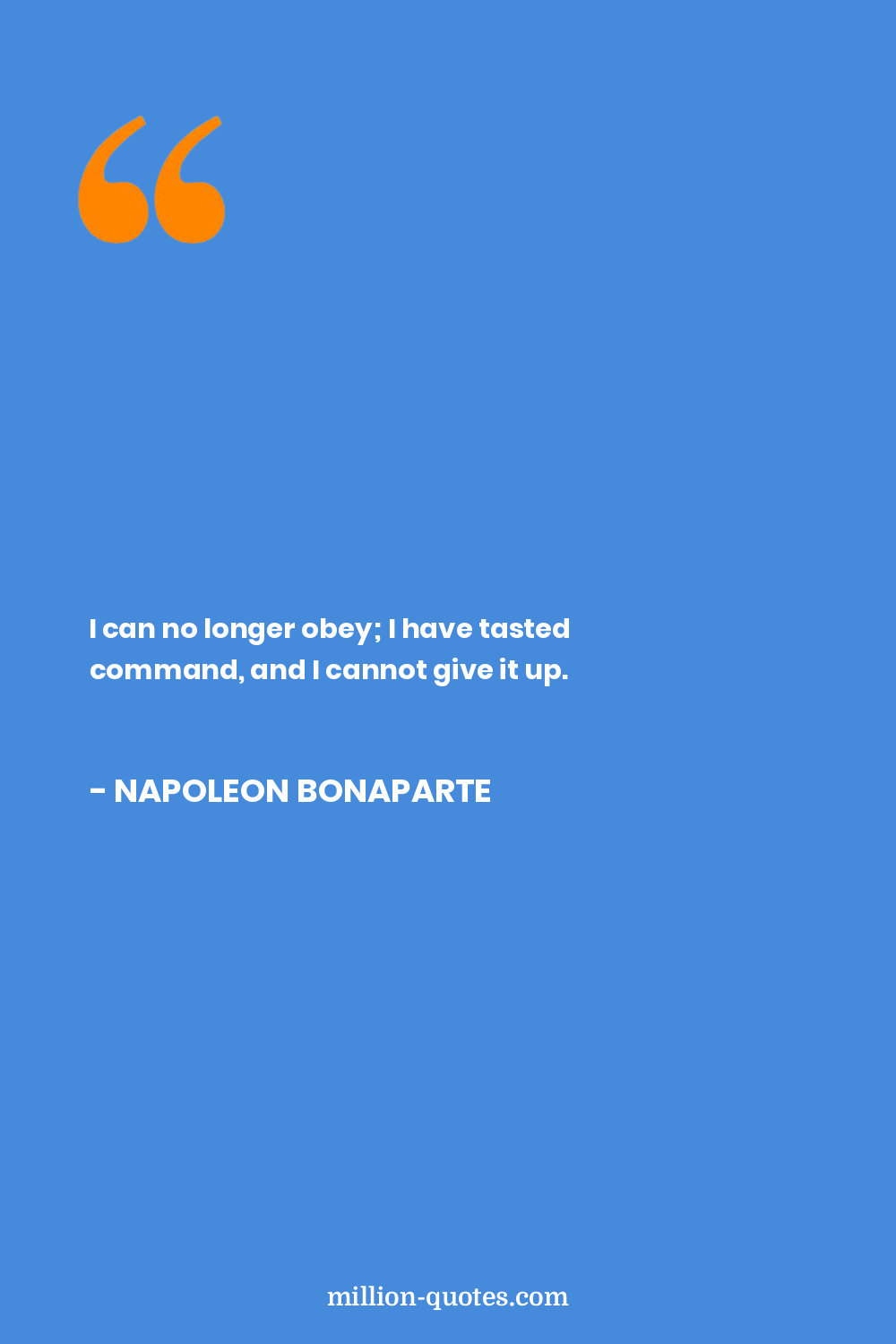 I can no longer obey; I have tasted command, and I cannot give it up.