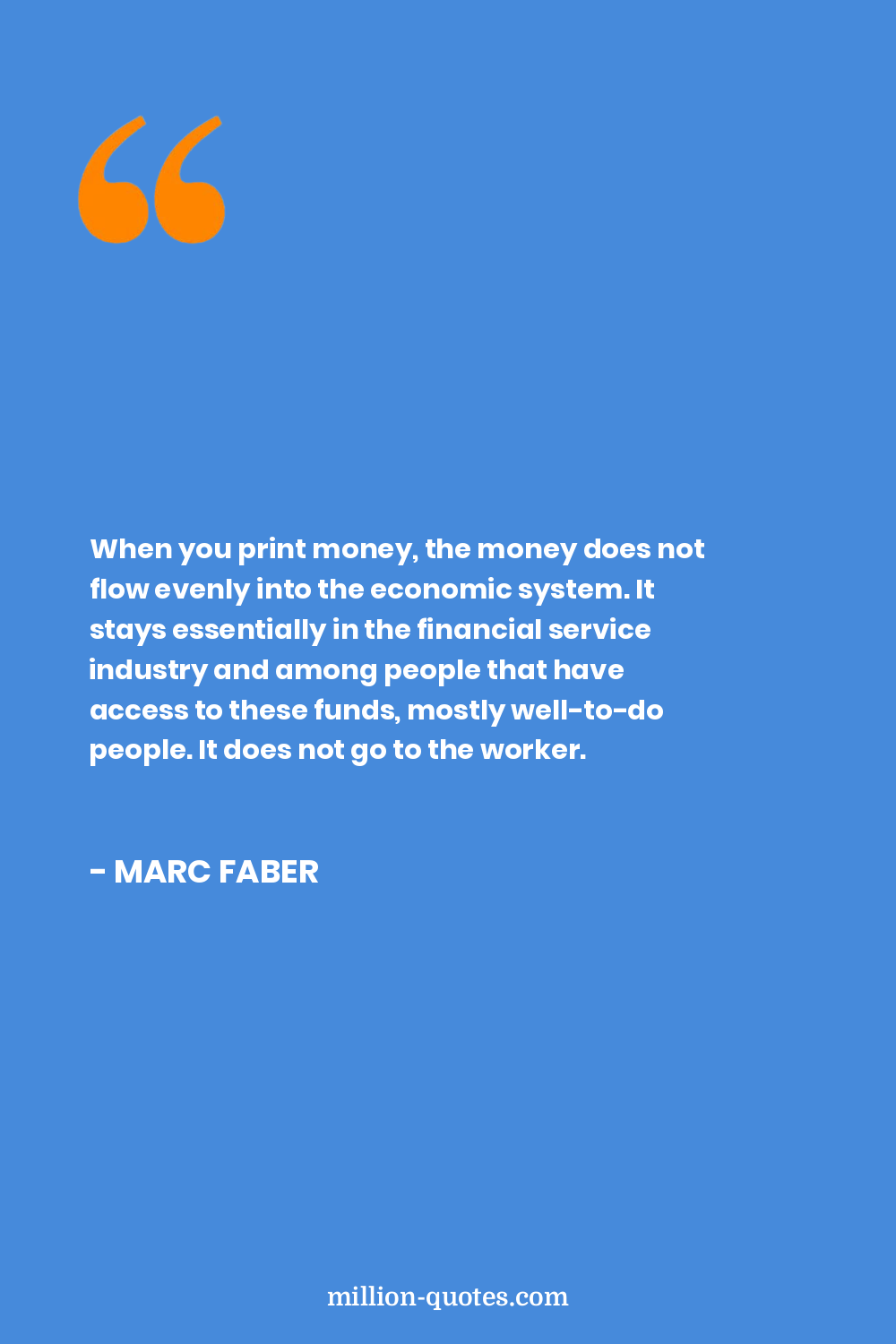When you print money, the money does not flow evenly into the economic system. It stays essentially in the financial service industry and among people that have access to these funds, mostly well-to-do people. It does not go to the worker.