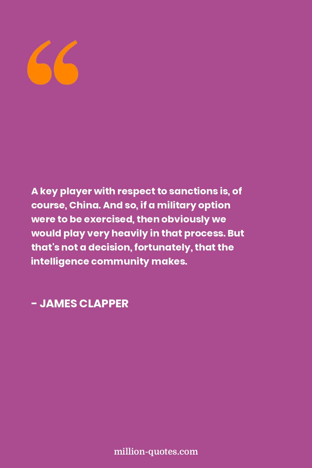 A key player with respect to sanctions is, of course, China. And so, if a military option were to be exercised, then obviously we would play very heavily in that process. But that's not a decision, fortunately, that the intelligence community makes.