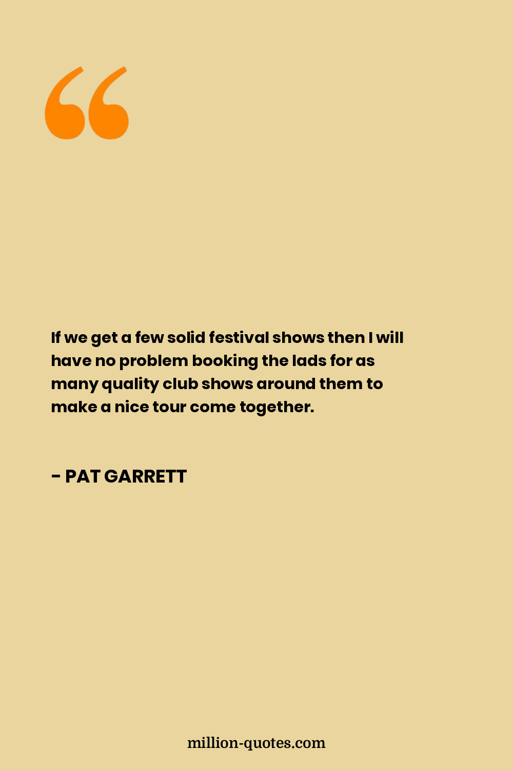If we get a few solid festival shows then I will have no problem booking the lads for as many quality club shows around them to make a nice tour come together.