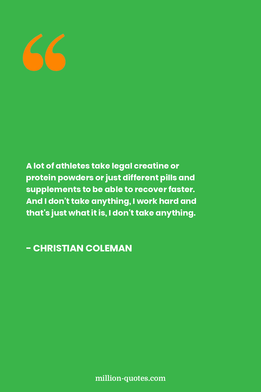 A lot of athletes take legal creatine or protein powders or just different pills and supplements to be able to recover faster. And I don't take anything, I work hard and that's just what it is, I don't take anything.