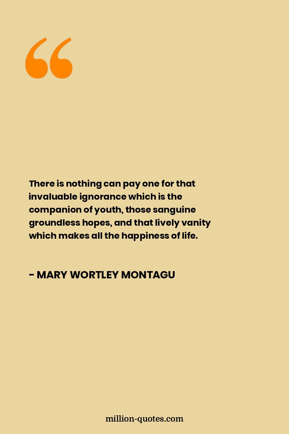 There is nothing can pay one for that invaluable ignorance which is the companion of youth, those sanguine groundless hopes, and that lively vanity which makes all the happiness of life.