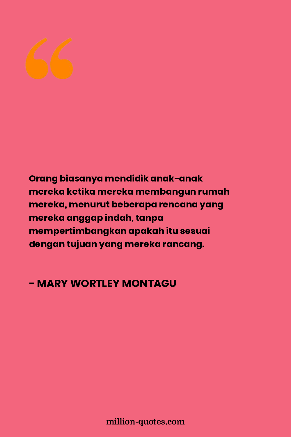 Orang biasanya mendidik anak-anak mereka ketika mereka membangun rumah mereka, menurut beberapa rencana yang mereka anggap indah, tanpa mempertimbangkan apakah itu sesuai dengan tujuan yang mereka rancang.