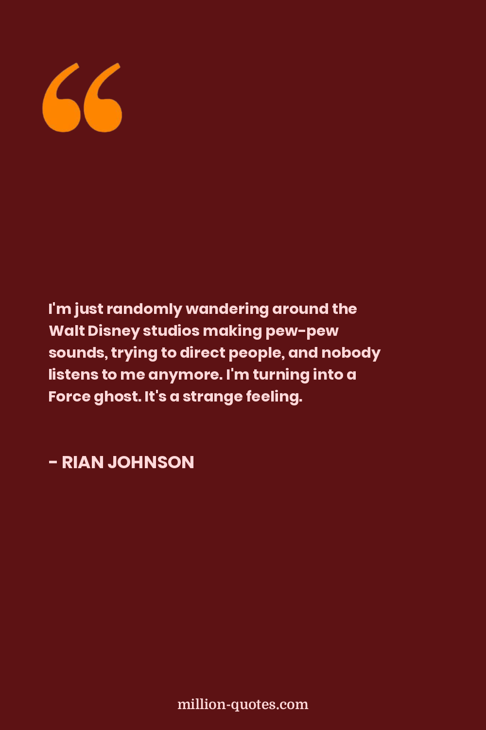 I'm just randomly wandering around the Walt Disney studios making pew-pew sounds, trying to direct people, and nobody listens to me anymore. I'm turning into a Force ghost. It's a strange feeling.