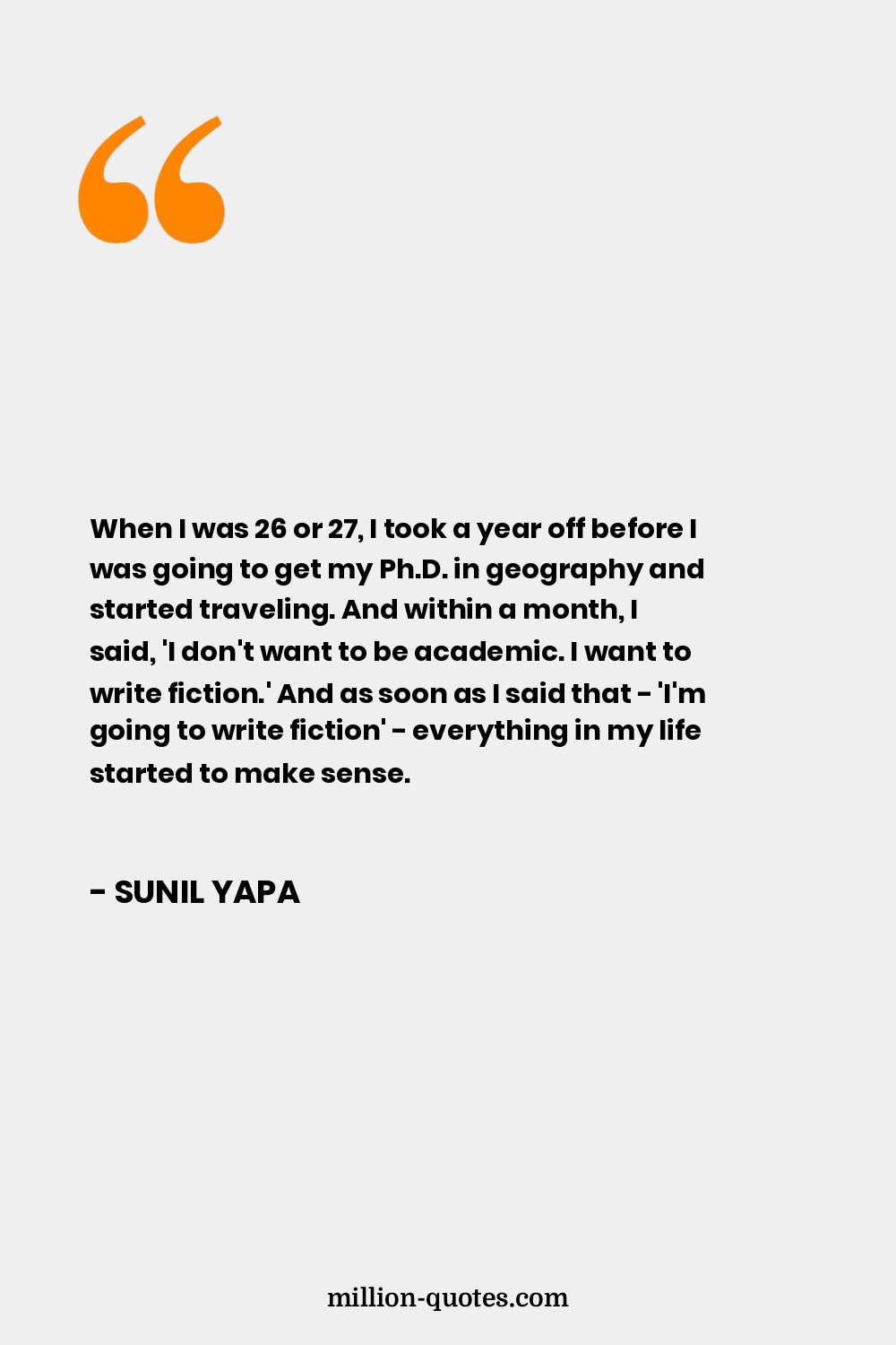 When I was 26 or 27, I took a year off before I was going to get my Ph.D. in geography and started traveling. And within a month, I said, 'I don't want to be academic. I want to write fiction.' And as soon as I said that - 'I'm going to write fiction' - everything in my life started to make sense.