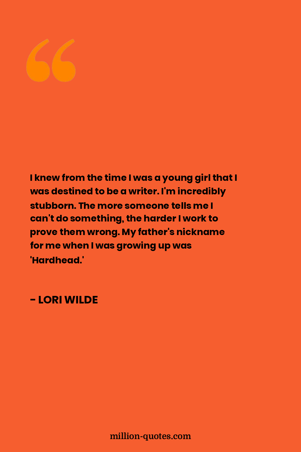 I knew from the time I was a young girl that I was destined to be a writer. I'm incredibly stubborn. The more someone tells me I can't do something, the harder I work to prove them wrong. My father's nickname for me when I was growing up was 'Hardhead.'