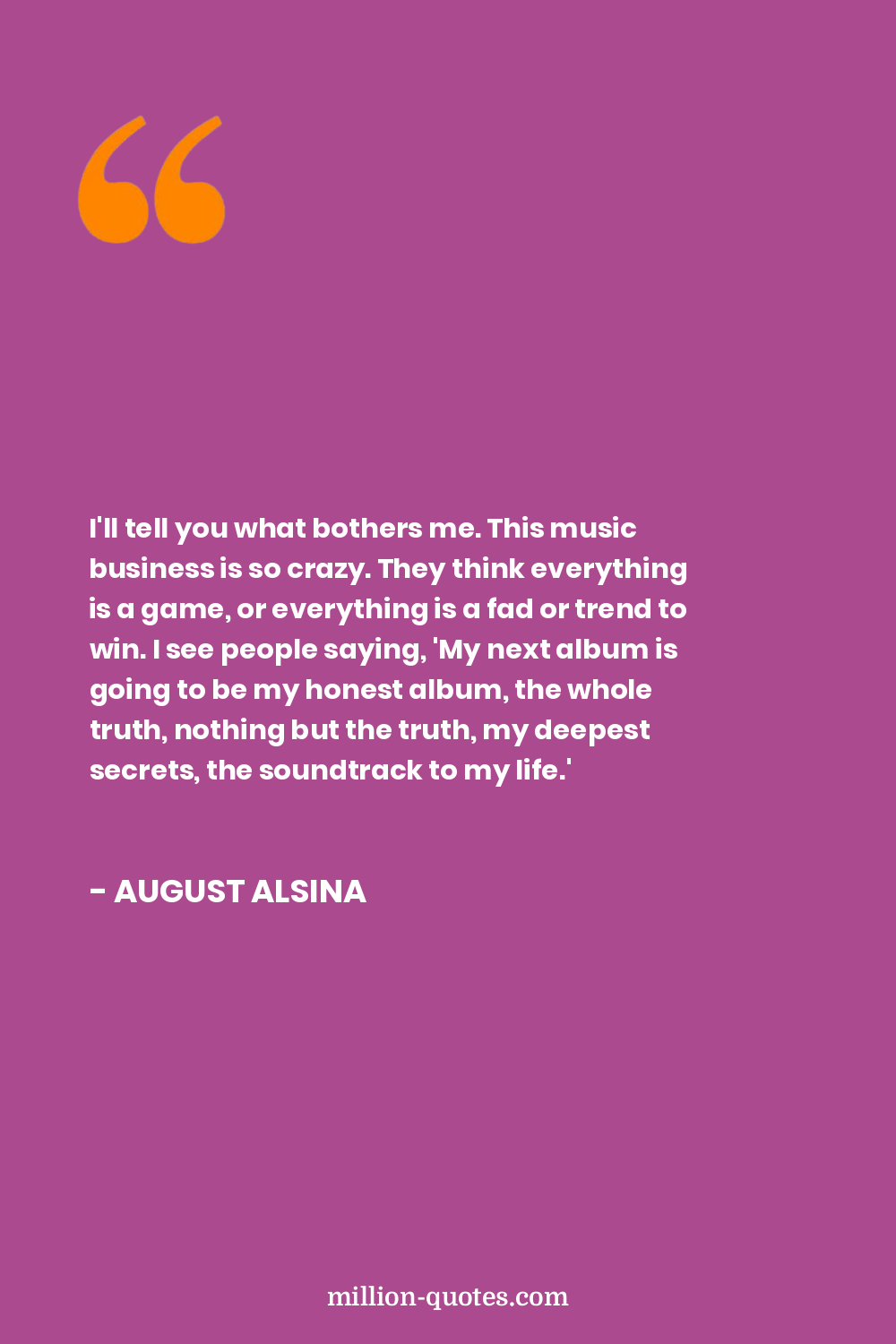 I'll tell you what bothers me. This music business is so crazy. They think everything is a game, or everything is a fad or trend to win. I see people saying, 'My next album is going to be my honest album, the whole truth, nothing but the truth, my deepest secrets, the soundtrack to my life.'