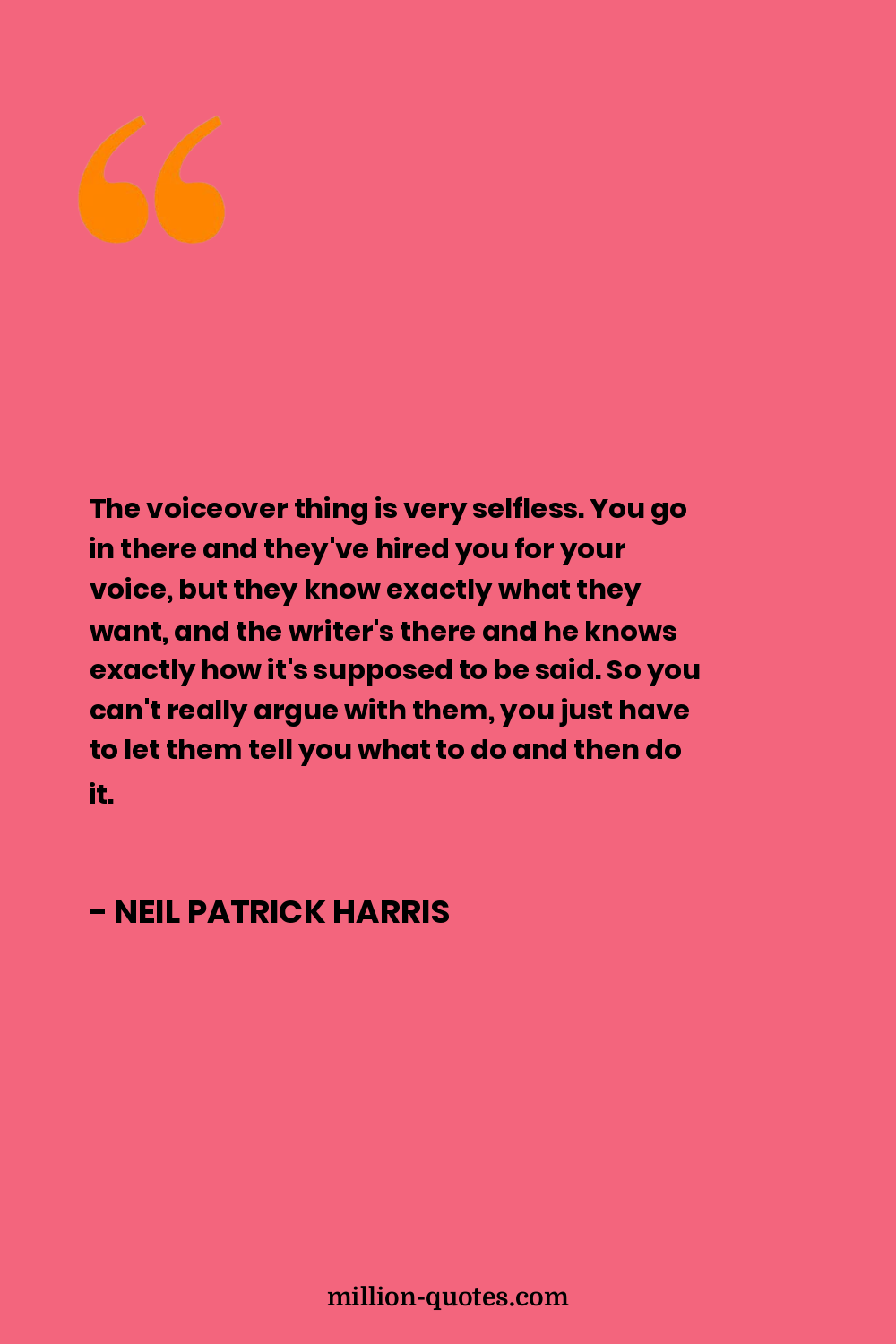 The voiceover thing is very selfless. You go in there and they've hired you for your voice, but they know exactly what they want, and the writer's there and he knows exactly how it's supposed to be said. So you can't really argue with them, you just have to let them tell you what to do and then do it.