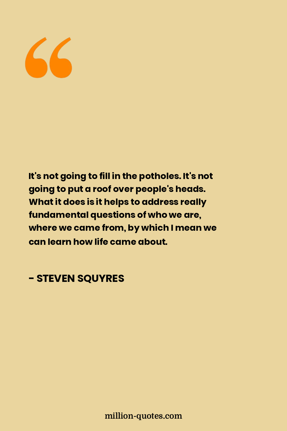 It's not going to fill in the potholes. It's not going to put a roof over people's heads. What it does is it helps to address really fundamental questions of who we are, where we came from, by which I mean we can learn how life came about.