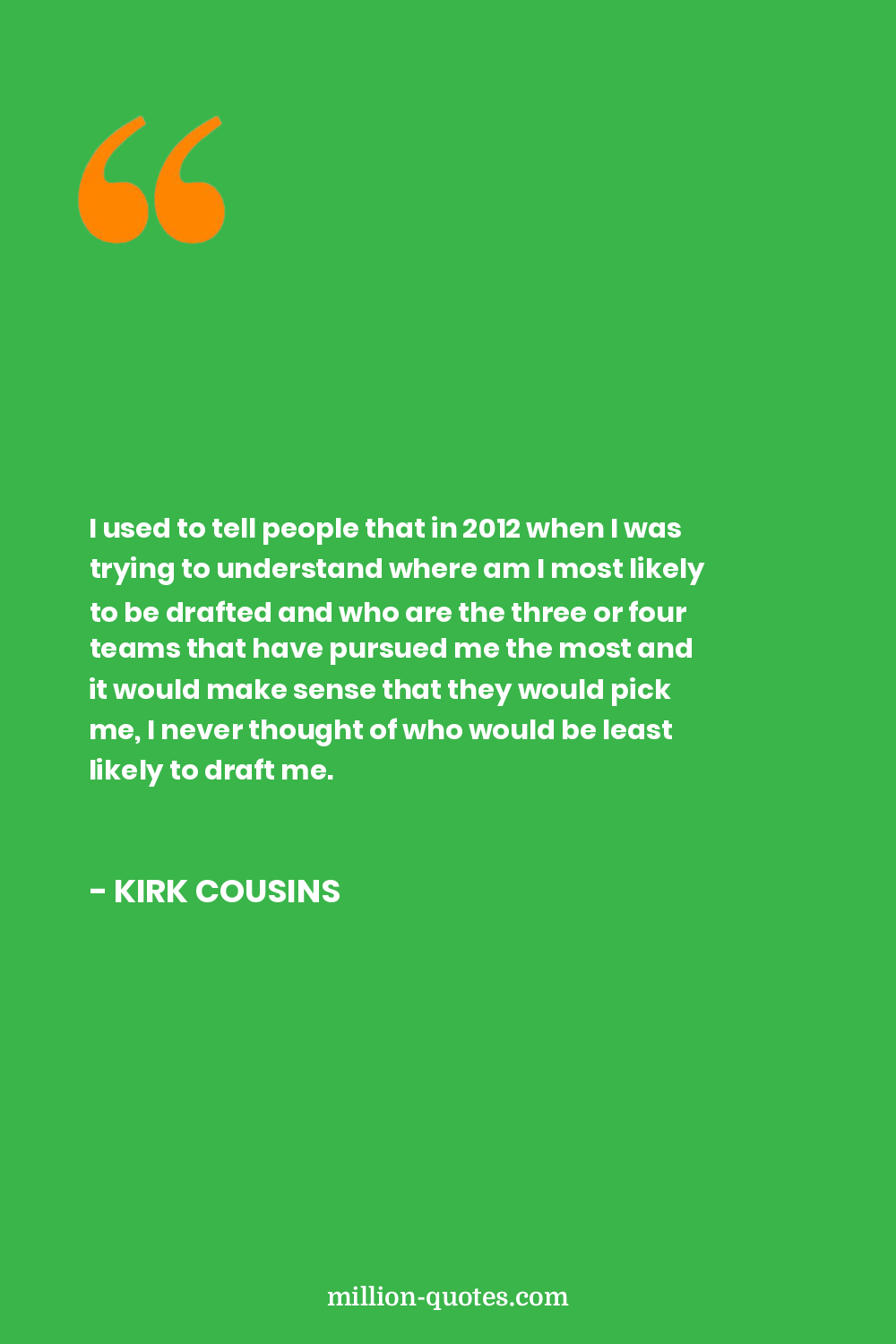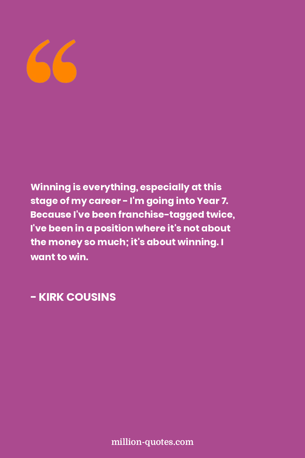 Guys can see through fake! They can tell someone who's just trying to check the box! So, I've got to be Kirk Cousins and believe that'll be good enough!
