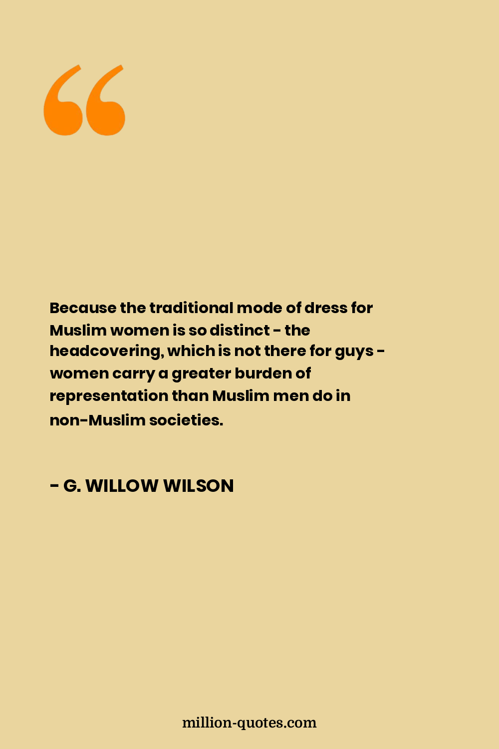 Because the traditional mode of dress for Muslim women is so distinct - the headcovering, which is not there for guys - women carry a greater burden of representation than Muslim men do in non-Muslim societies.