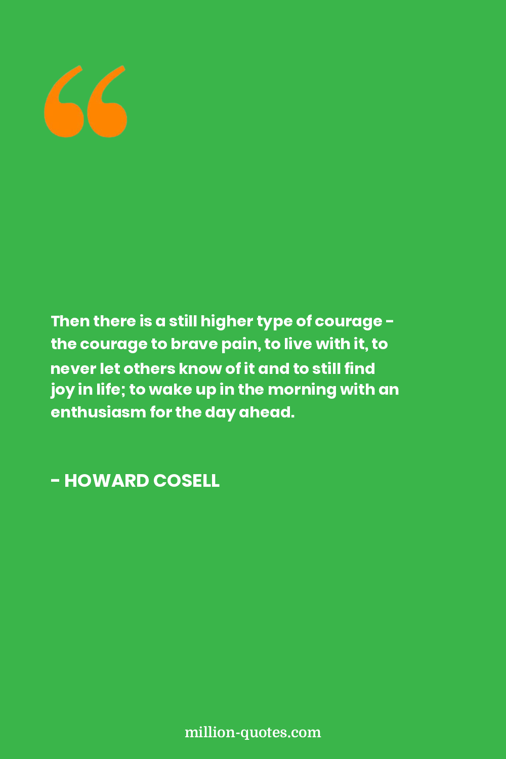 Then there is a still higher type of courage - the courage to brave pain, to live with it, to never let others know of it and to still find joy in life; to wake up in the morning with an enthusiasm for the day ahead.