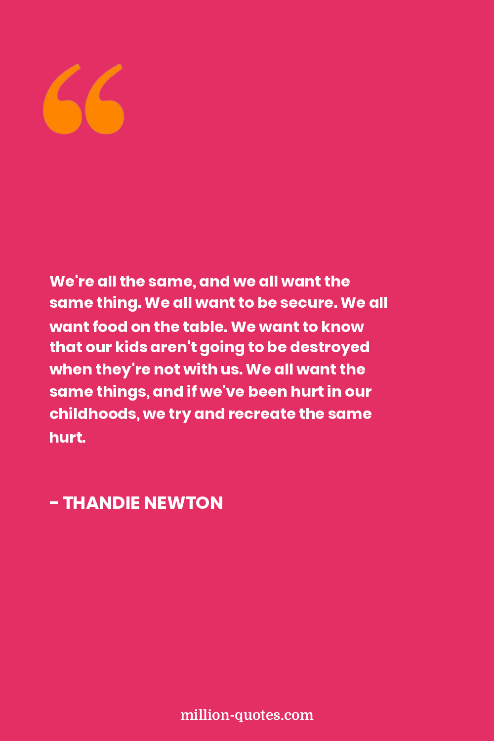 We're all the same, and we all want the same thing. We all want to be secure. We all want food on the table. We want to know that our kids aren't going to be destroyed when they're not with us. We all want the same things, and if we've been hurt in our childhoods, we try and recreate the same hurt.