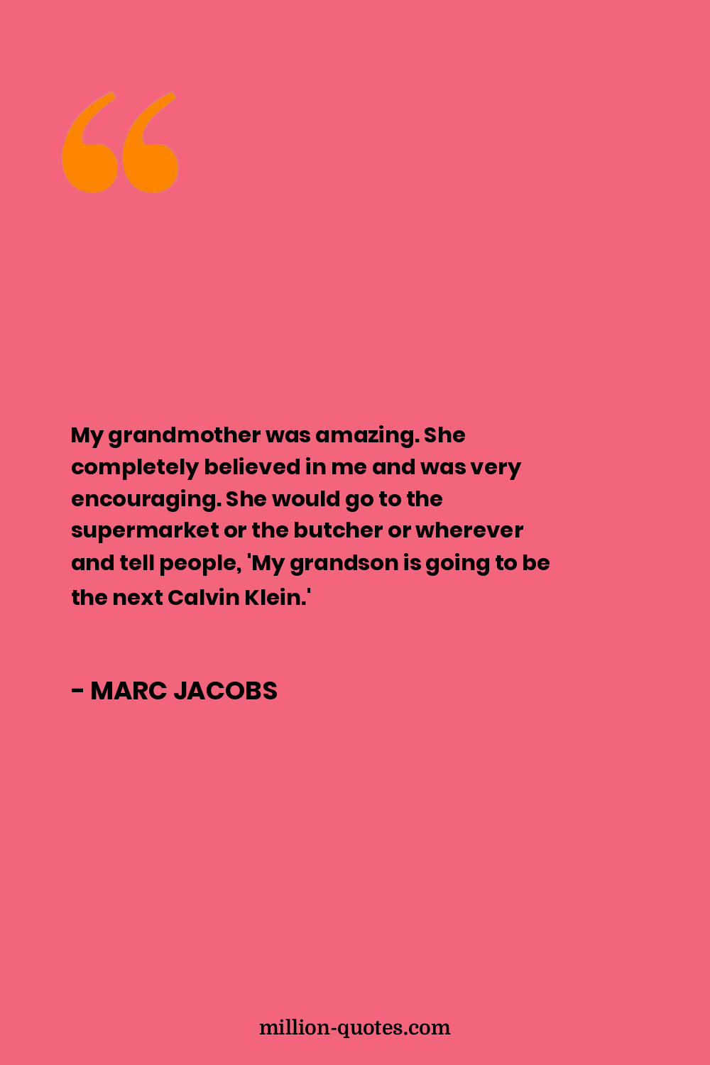 My grandmother was amazing. She completely believed in me and was very encouraging. She would go to the supermarket or the butcher or wherever and tell people, 'My grandson is going to be the next Calvin Klein.'
