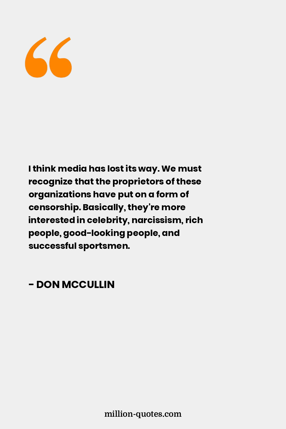 I think media has lost its way. We must recognize that the proprietors of these organizations have put on a form of censorship. Basically, they're more interested in celebrity, narcissism, rich people, good-looking people, and successful sportsmen.
