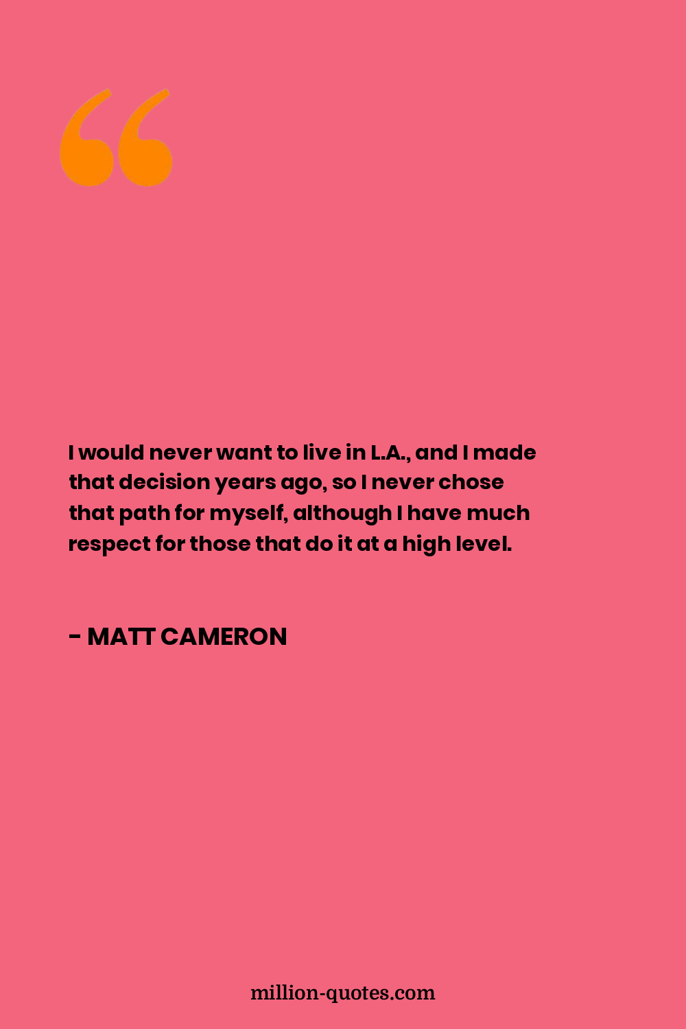 I would never want to live in L.A., and I made that decision years ago, so I never chose that path for myself, although I have much respect for those that do it at a high level.