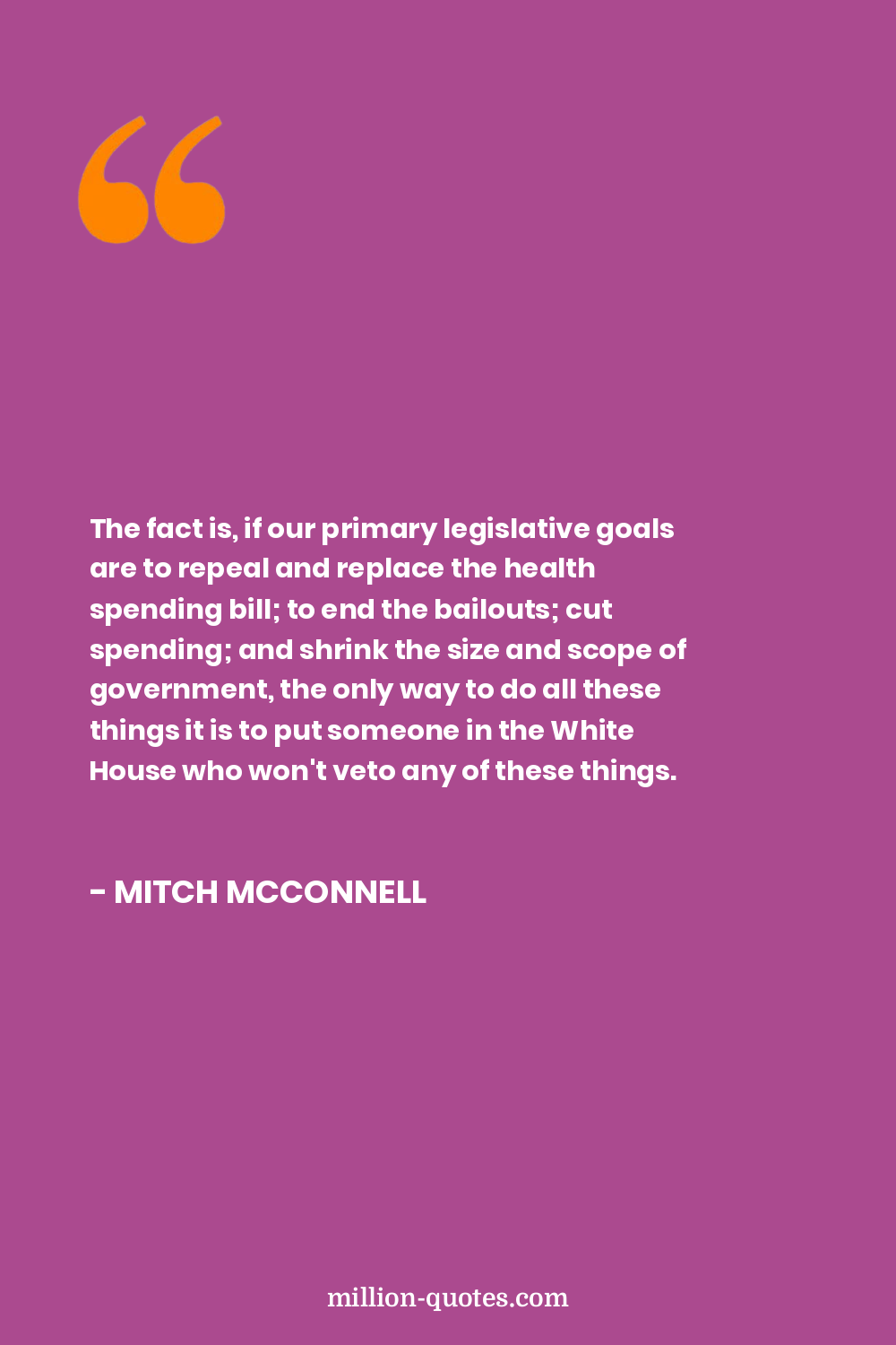 The fact is, if our primary legislative goals are to repeal and replace the health spending bill; to end the bailouts; cut spending; and shrink the size and scope of government, the only way to do all these things it is to put someone in the White House who won't veto any of these things.
