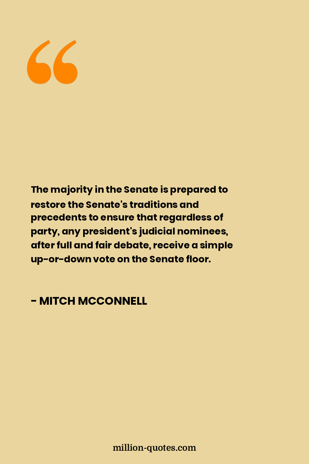 The majority in the Senate is prepared to restore the Senate's traditions and precedents to ensure that regardless of party, any president's judicial nominees, after full and fair debate, receive a simple up-or-down vote on the Senate floor.