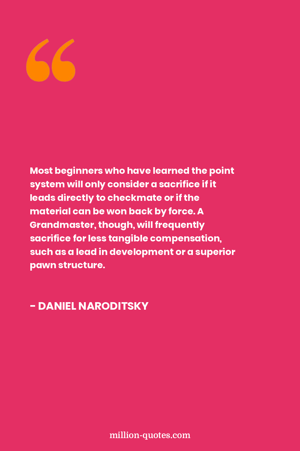 Most beginners who have learned the point system will only consider a sacrifice if it leads directly to checkmate or if the material can be won back by force. A Grandmaster, though, will frequently sacrifice for less tangible compensation, such as a lead in development or a superior pawn structure.