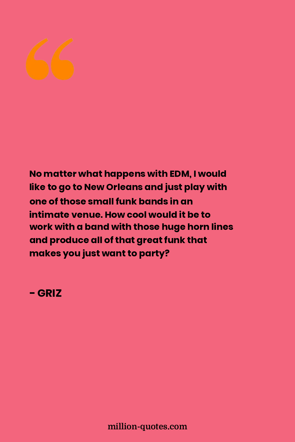 No matter what happens with EDM, I would like to go to New Orleans and just play with one of those small funk bands in an intimate venue. How cool would it be to work with a band with those huge horn lines and produce all of that great funk that makes you just want to party?