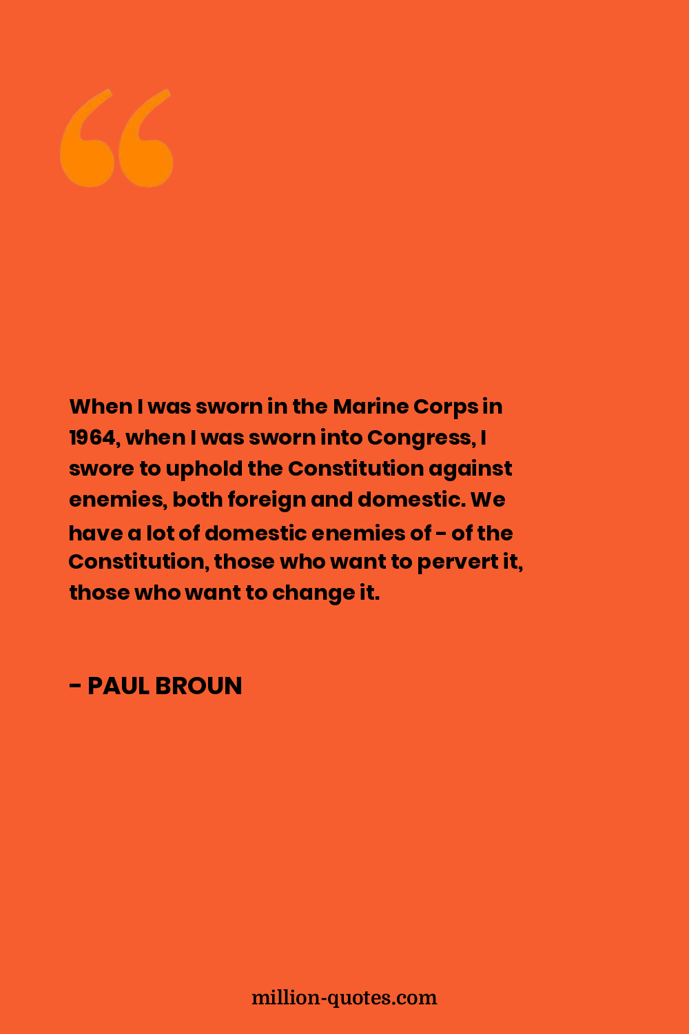 When I was sworn in the Marine Corps in 1964, when I was sworn into Congress, I swore to uphold the Constitution against enemies, both foreign and domestic. We have a lot of domestic enemies of - of the Constitution, those who want to pervert it, those who want to change it.
