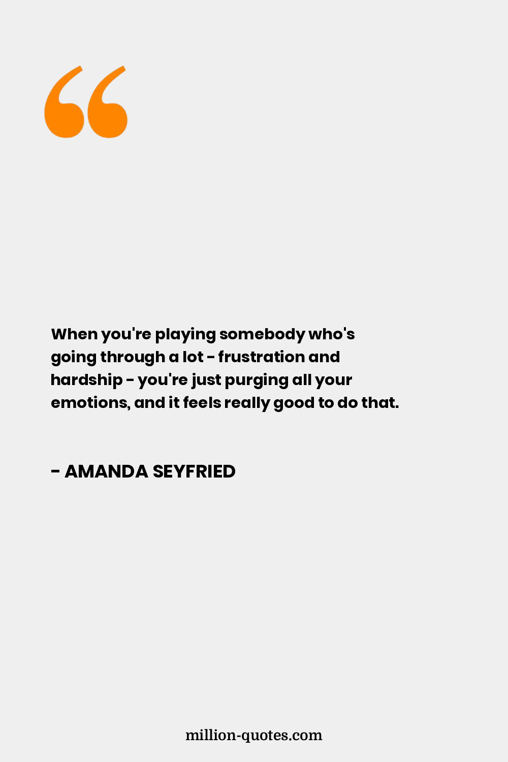 When you're playing somebody who's going through a lot - frustration and hardship - you're just purging all your emotions, and it feels really good to do that.
