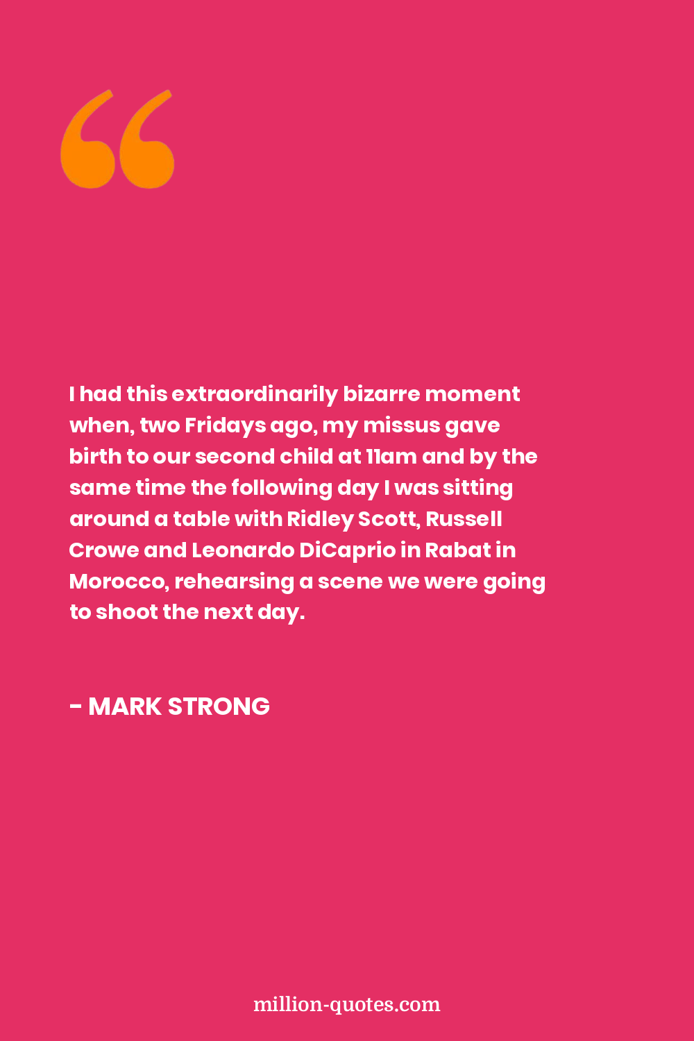 I had this extraordinarily bizarre moment when, two Fridays ago, my missus gave birth to our second child at 11am and by the same time the following day I was sitting around a table with Ridley Scott, Russell Crowe and Leonardo DiCaprio in Rabat in Morocco, rehearsing a scene we were going to shoot the next day.