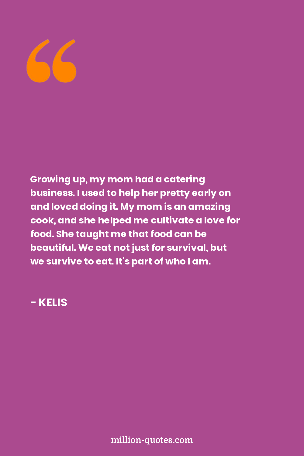 Growing up, my mom had a catering business. I used to help her pretty early on and loved doing it. My mom is an amazing cook, and she helped me cultivate a love for food. She taught me that food can be beautiful. We eat not just for survival, but we survive to eat. It's part of who I am.