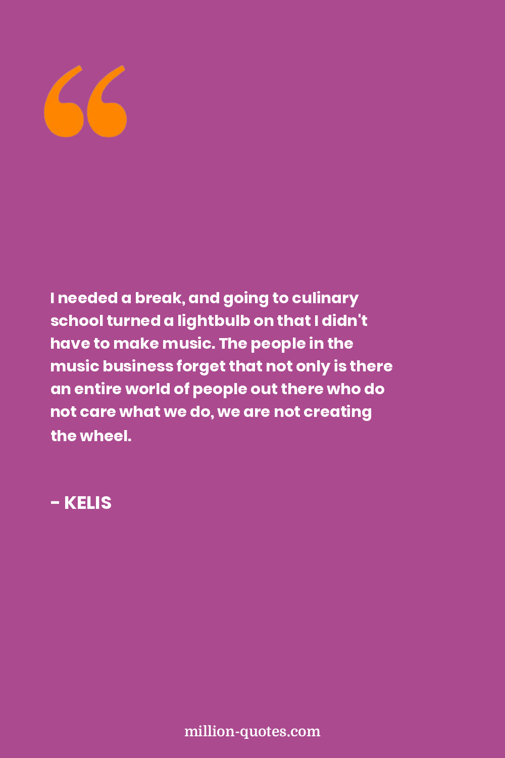 I needed a break, and going to culinary school turned a lightbulb on that I didn't have to make music. The people in the music business forget that not only is there an entire world of people out there who do not care what we do, we are not creating the wheel.