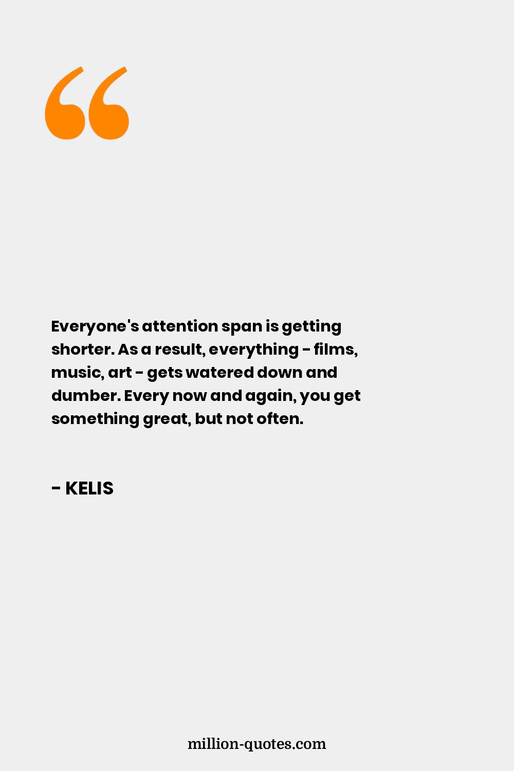 Everyone's attention span is getting shorter. As a result, everything - films, music, art - gets watered down and dumber. Every now and again, you get something great, but not often.