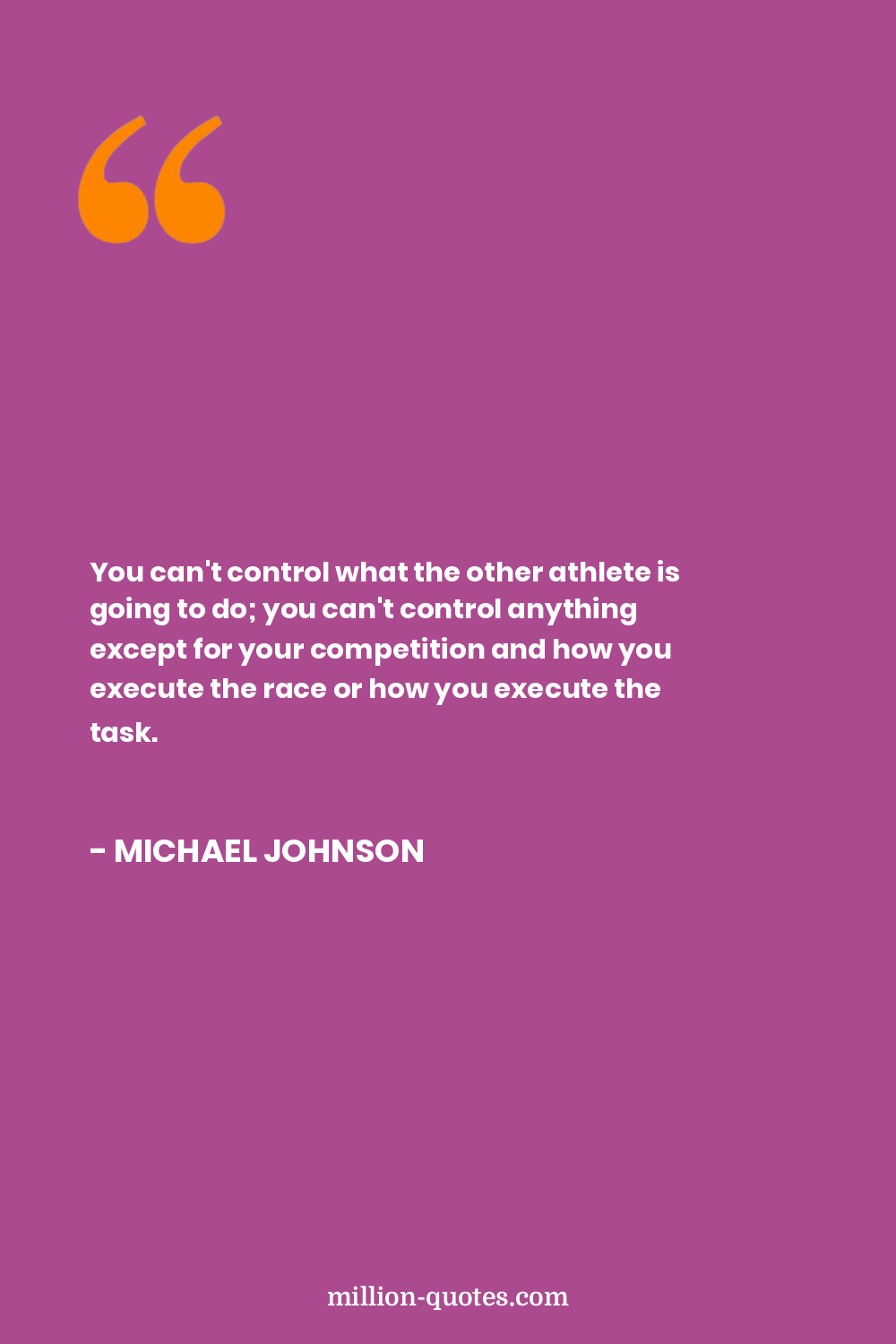 You can't control what the other athlete is going to do; you can't control anything except for your competition and how you execute the race or how you execute the task.