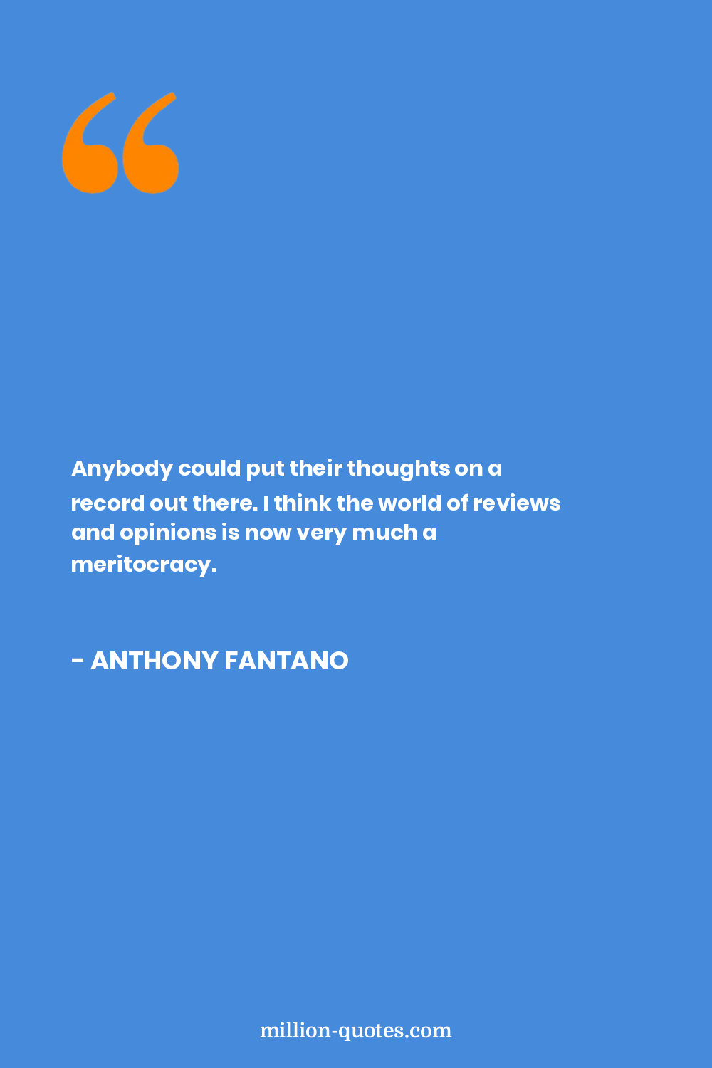 Anybody could put their thoughts on a record out there. I think the world of reviews and opinions is now very much a meritocracy.