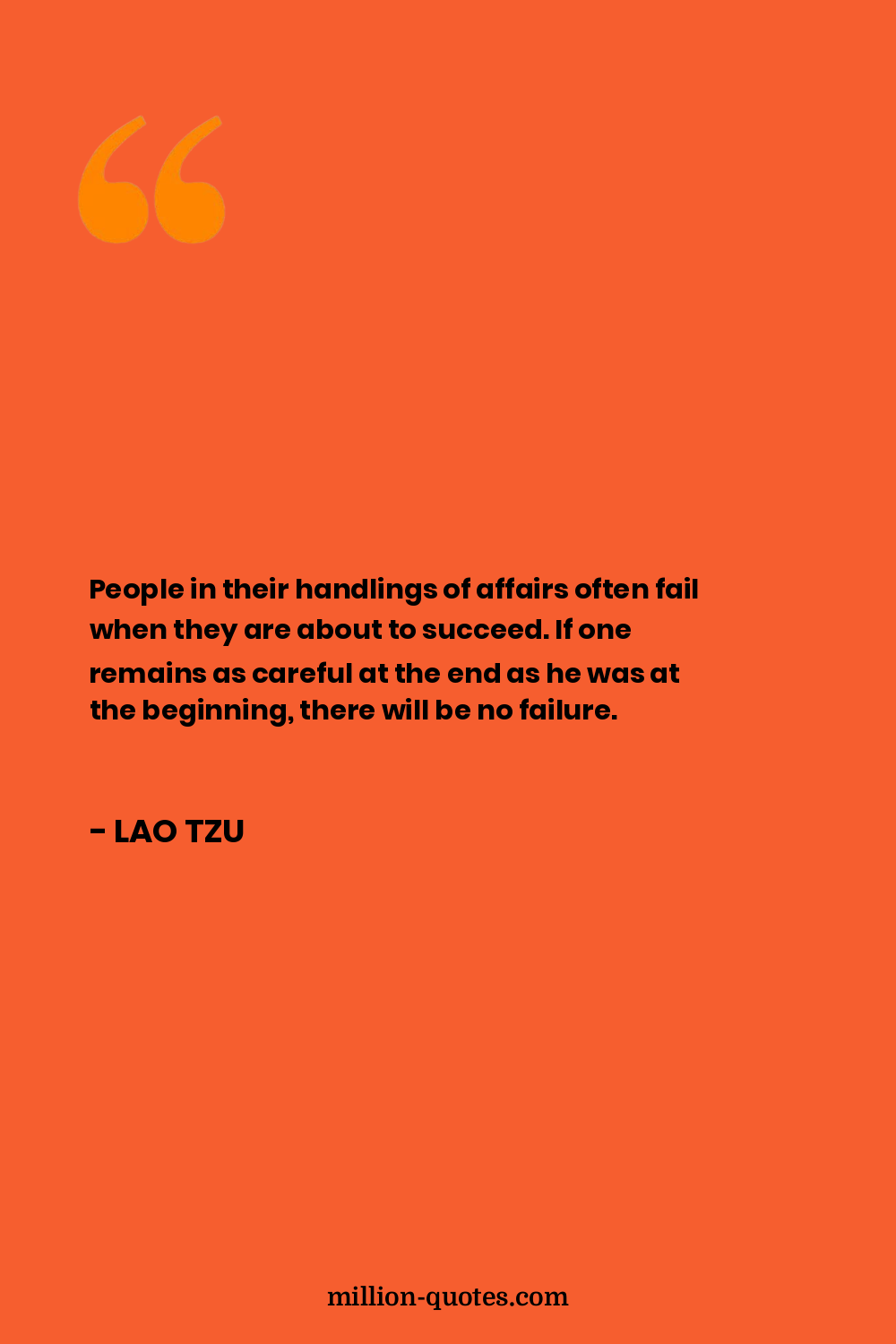 People in their handlings of affairs often fail when they are about to succeed. If one remains as careful at the end as he was at the beginning, there will be no failure.