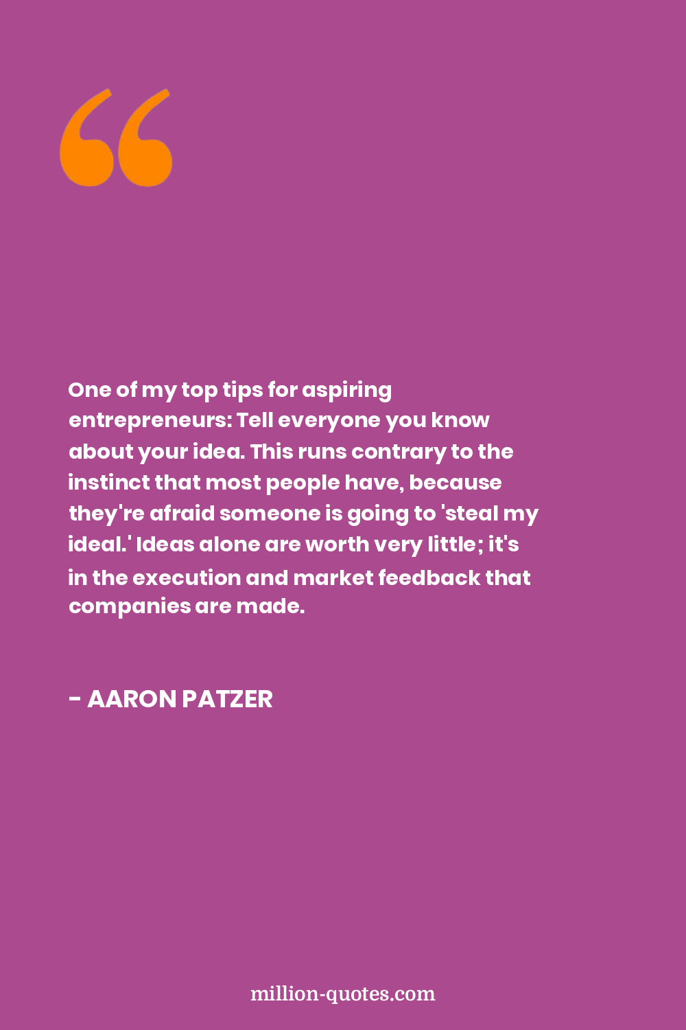 One of my top tips for aspiring entrepreneurs: Tell everyone you know about your idea. This runs contrary to the instinct that most people have, because they're afraid someone is going to 'steal my ideal.' Ideas alone are worth very little; it's in the execution and market feedback that companies are made.