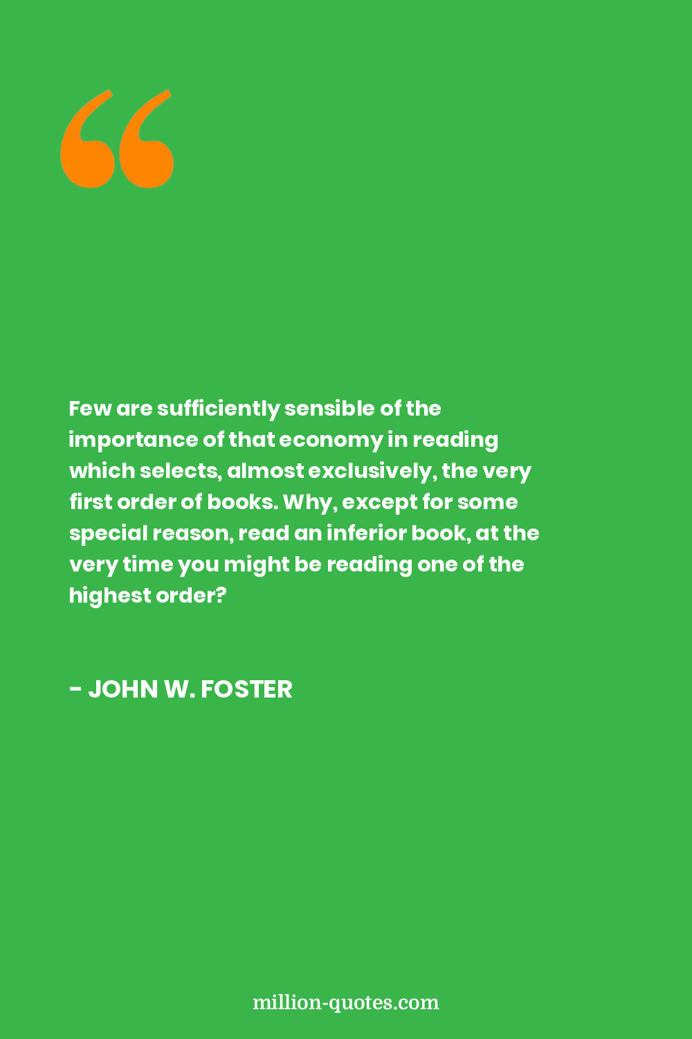 Few are sufficiently sensible of the importance of that economy in reading which selects, almost exclusively, the very first order of books. Why, except for some special reason, read an inferior book, at the very time you might be reading one of the highest order?