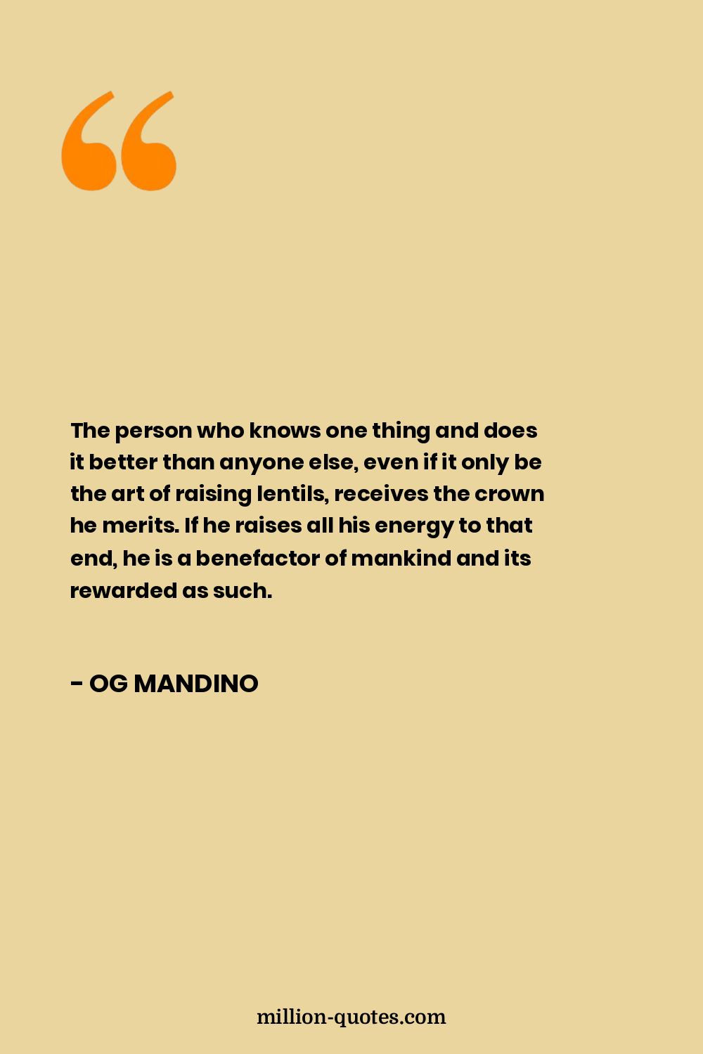 The person who knows one thing and does it better than anyone else, even if it only be the art of raising lentils, receives the crown he merits. If he raises all his energy to that end, he is a benefactor of mankind and its rewarded as such.