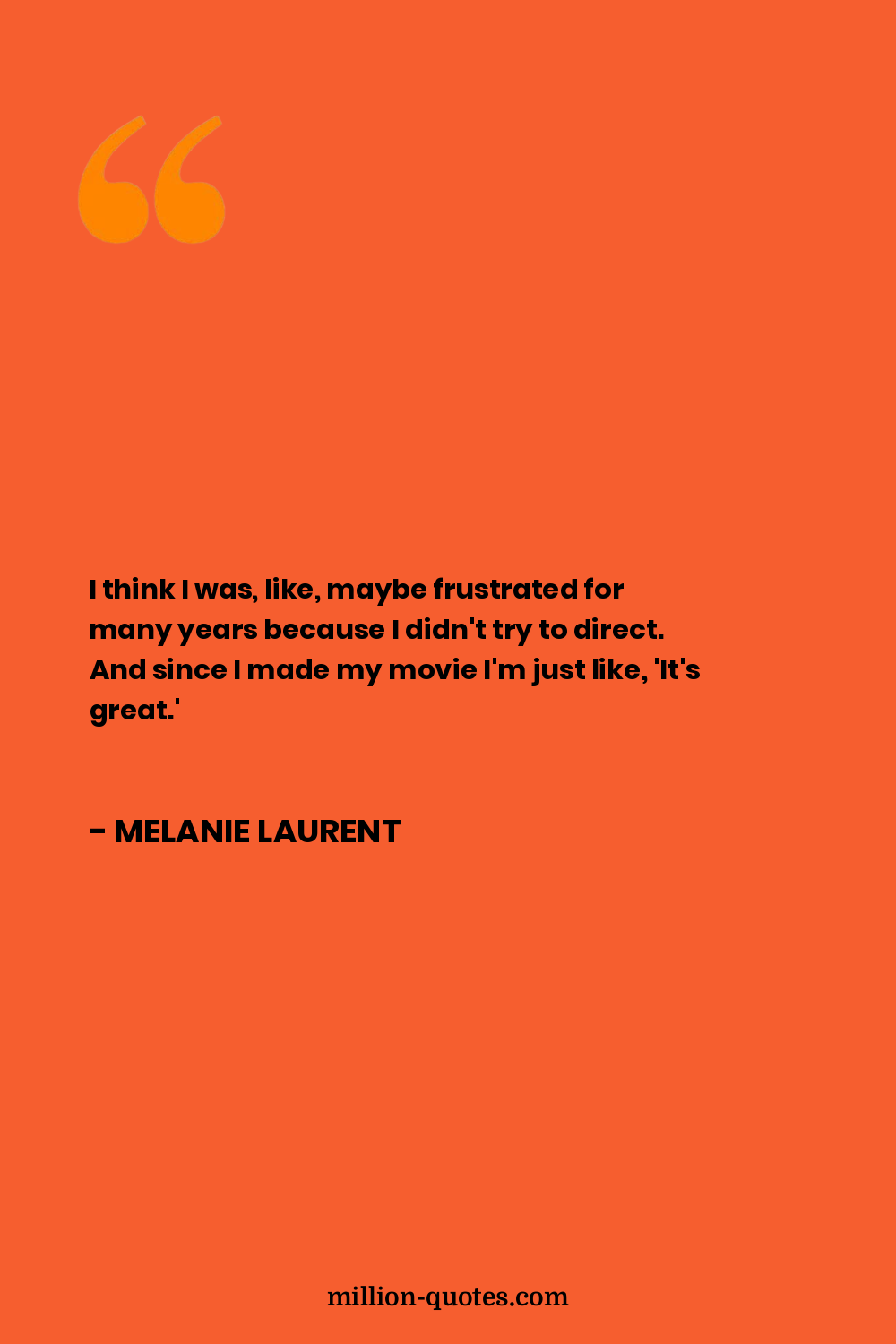 I think I was, like, maybe frustrated for many years because I didn't try to direct. And since I made my movie I'm just like, 'It's great.'