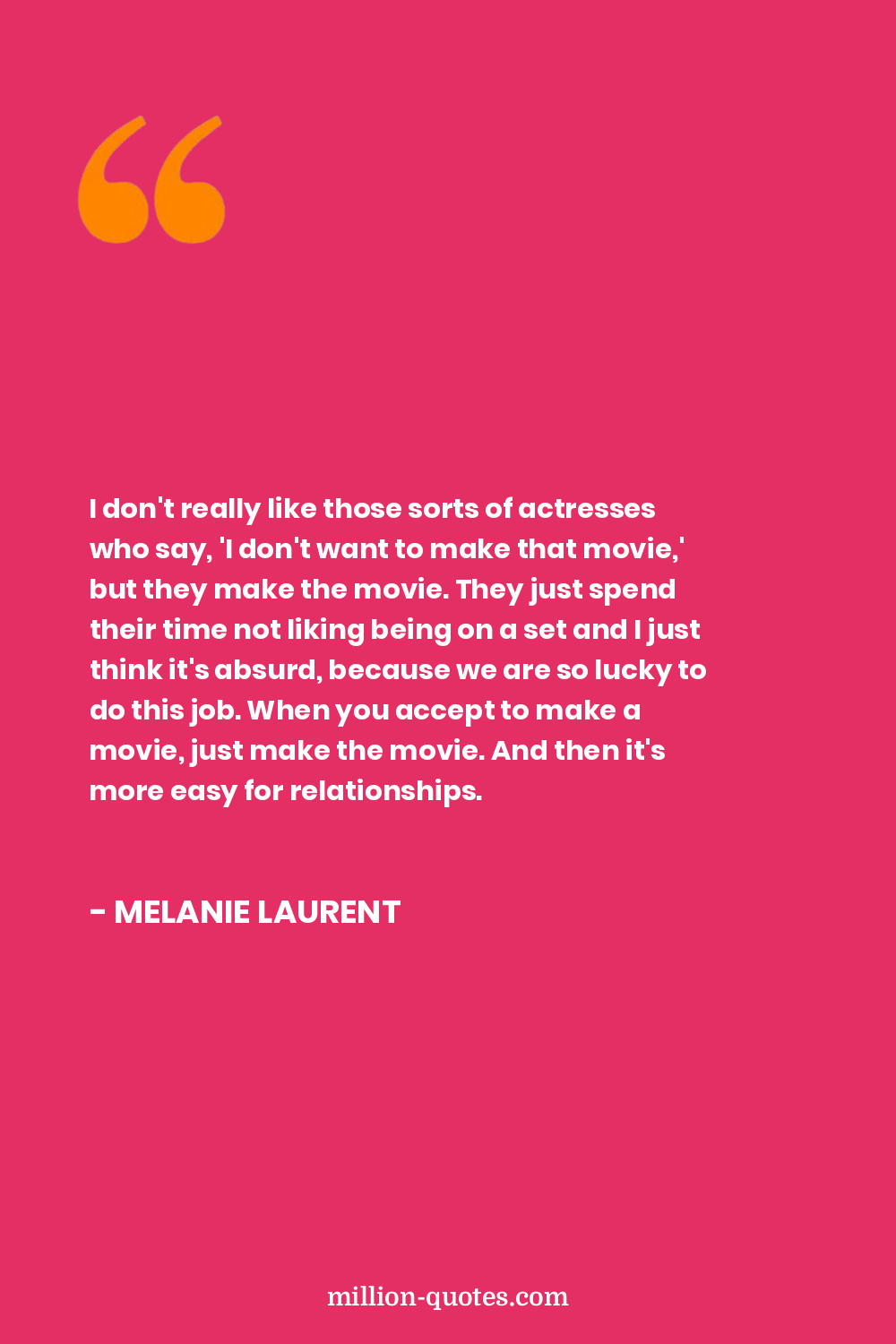 I don't really like those sorts of actresses who say, 'I don't want to make that movie,' but they make the movie. They just spend their time not liking being on a set and I just think it's absurd, because we are so lucky to do this job. When you accept to make a movie, just make the movie. And then it's more easy for relationships.