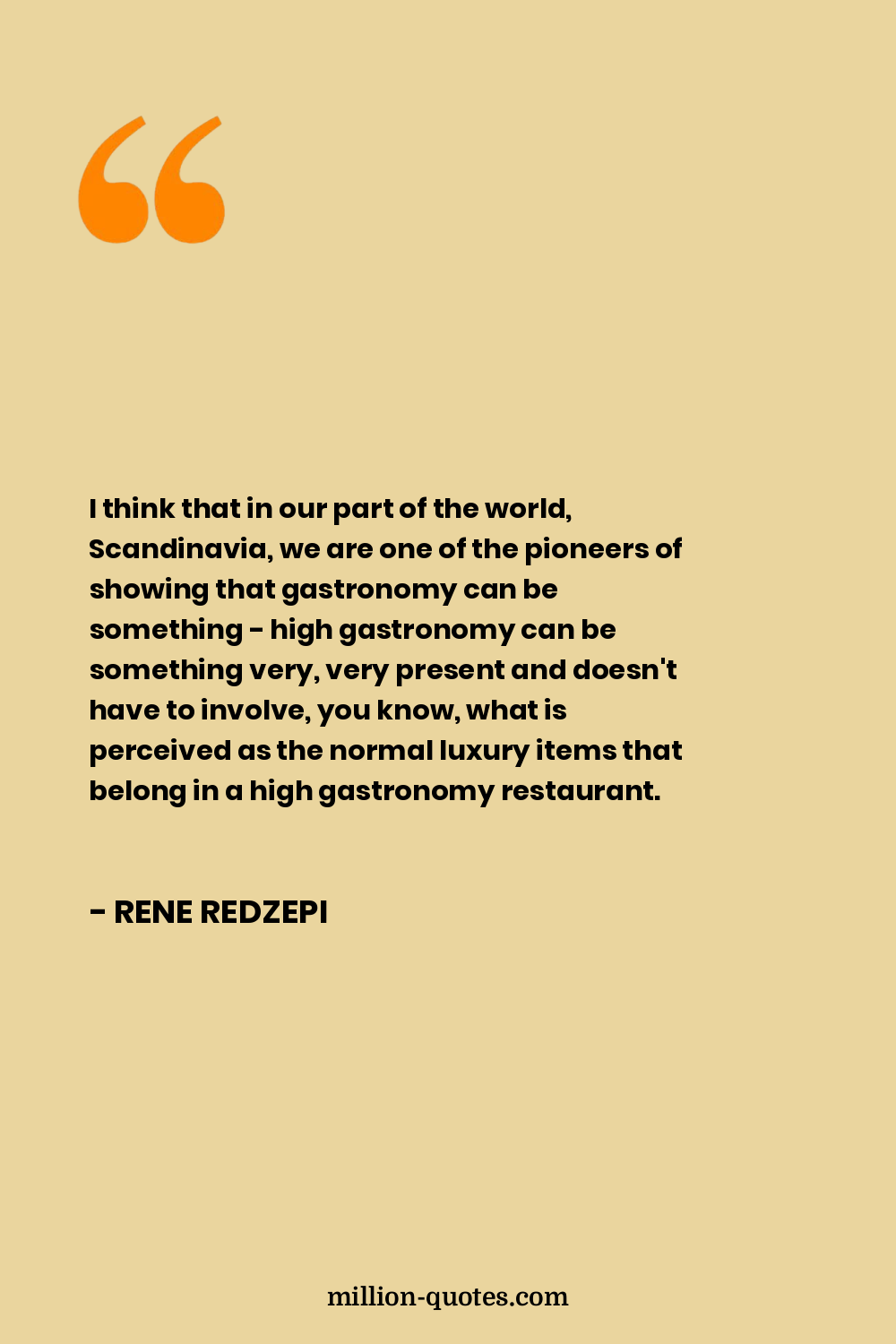 I think that in our part of the world, Scandinavia, we are one of the pioneers of showing that gastronomy can be something - high gastronomy can be something very, very present and doesn't have to involve, you know, what is perceived as the normal luxury items that belong in a high gastronomy restaurant.