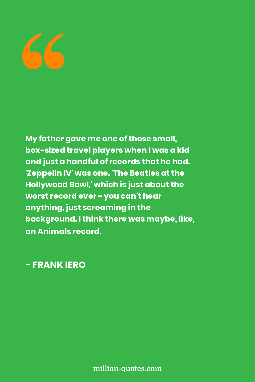 My father gave me one of those small, box-sized travel players when I was a kid and just a handful of records that he had. 'Zeppelin IV' was one. 'The Beatles at the Hollywood Bowl,' which is just about the worst record ever - you can't hear anything, just screaming in the background. I think there was maybe, like, an Animals record.