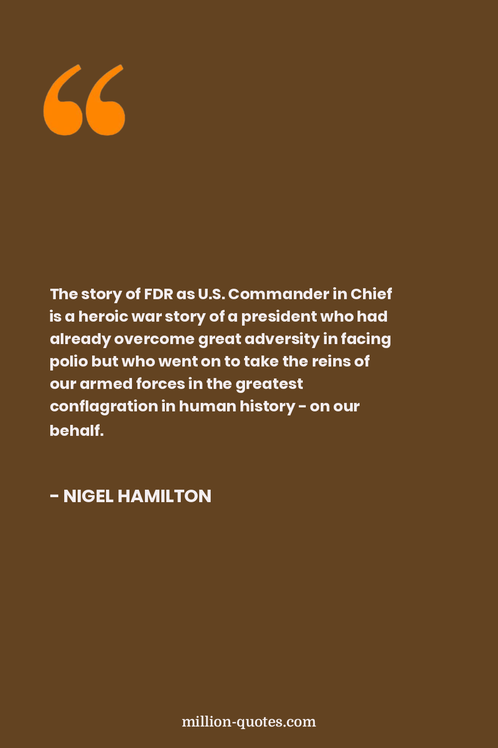 The story of FDR as U.S. Commander in Chief is a heroic war story of a president who had already overcome great adversity in facing polio but who went on to take the reins of our armed forces in the greatest conflagration in human history - on our behalf.