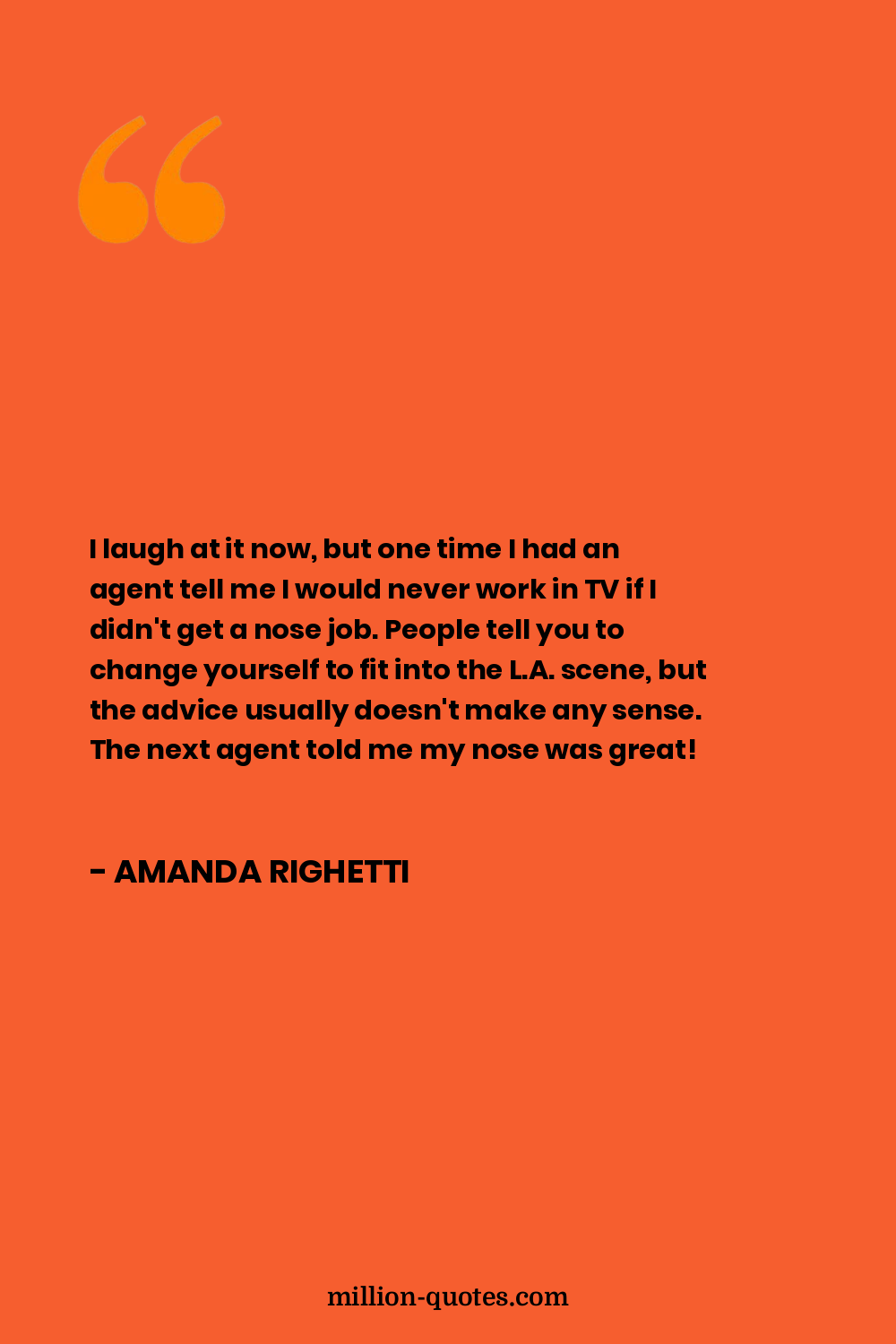 I laugh at it now, but one time I had an agent tell me I would never work in TV if I didn't get a nose job. People tell you to change yourself to fit into the L.A. scene, but the advice usually doesn't make any sense. The next agent told me my nose was great!