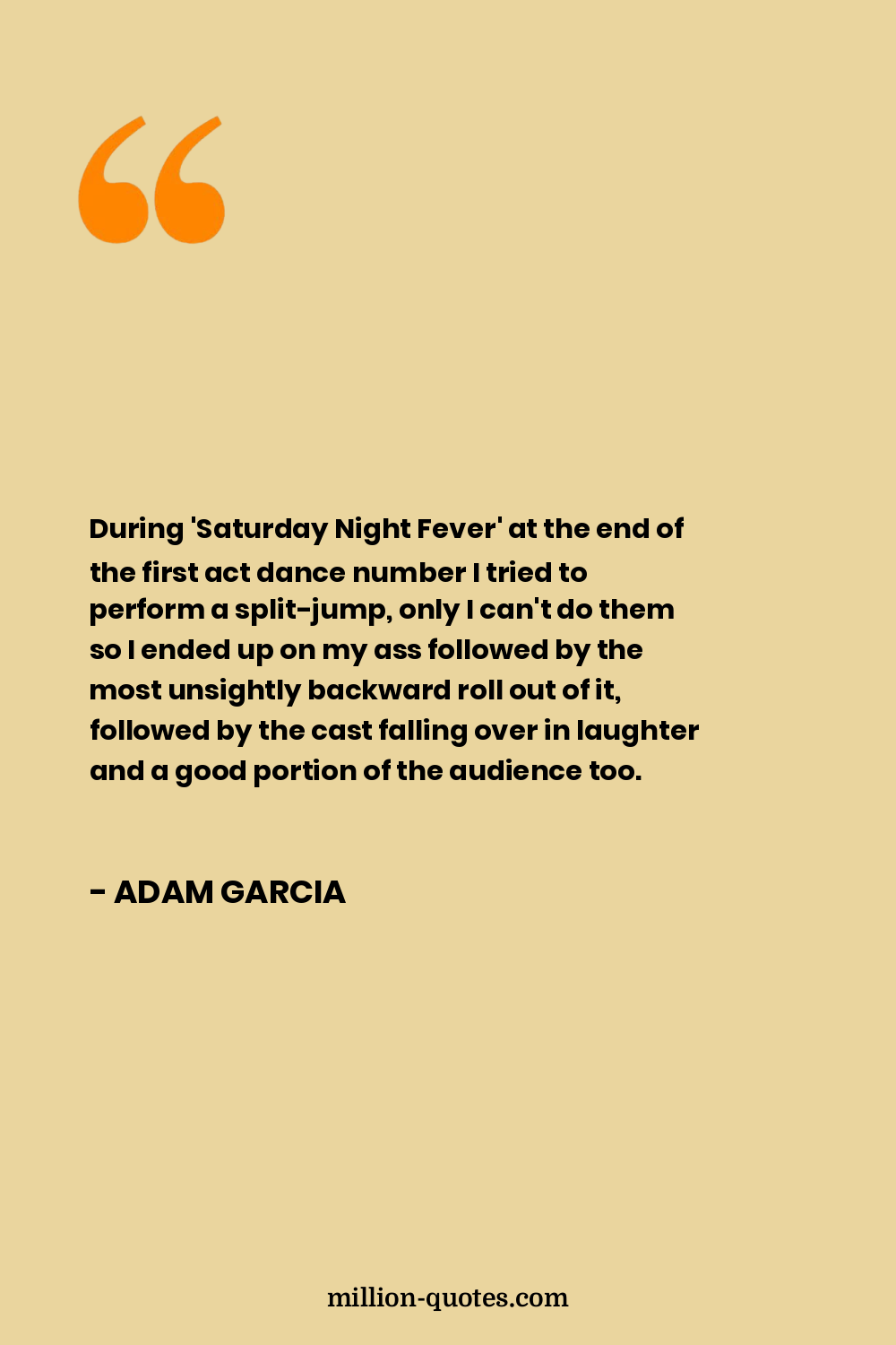 During 'Saturday Night Fever' at the end of the first act dance number I tried to perform a split-jump, only I can't do them so I ended up on my ass followed by the most unsightly backward roll out of it, followed by the cast falling over in laughter and a good portion of the audience too.