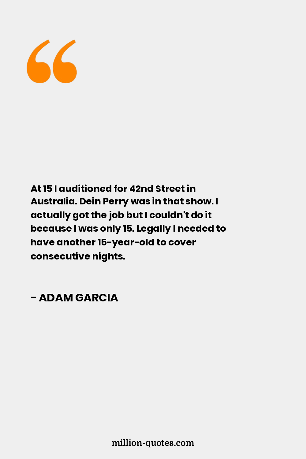 At 15 I auditioned for 42nd Street in Australia. Dein Perry was in that show. I actually got the job but I couldn't do it because I was only 15. Legally I needed to have another 15-year-old to cover consecutive nights.