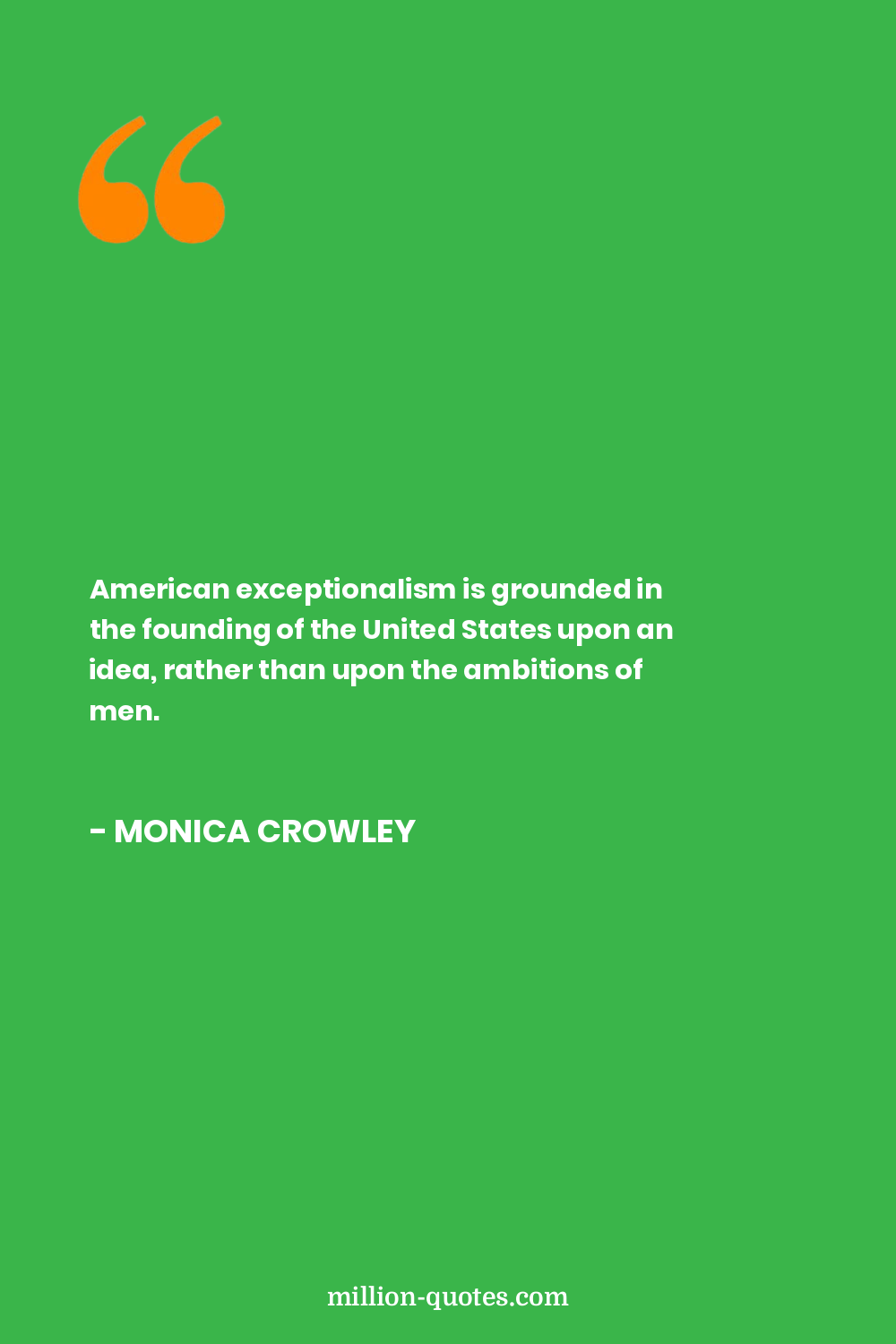 American exceptionalism is grounded in the founding of the United States upon an idea, rather than upon the ambitions of men.