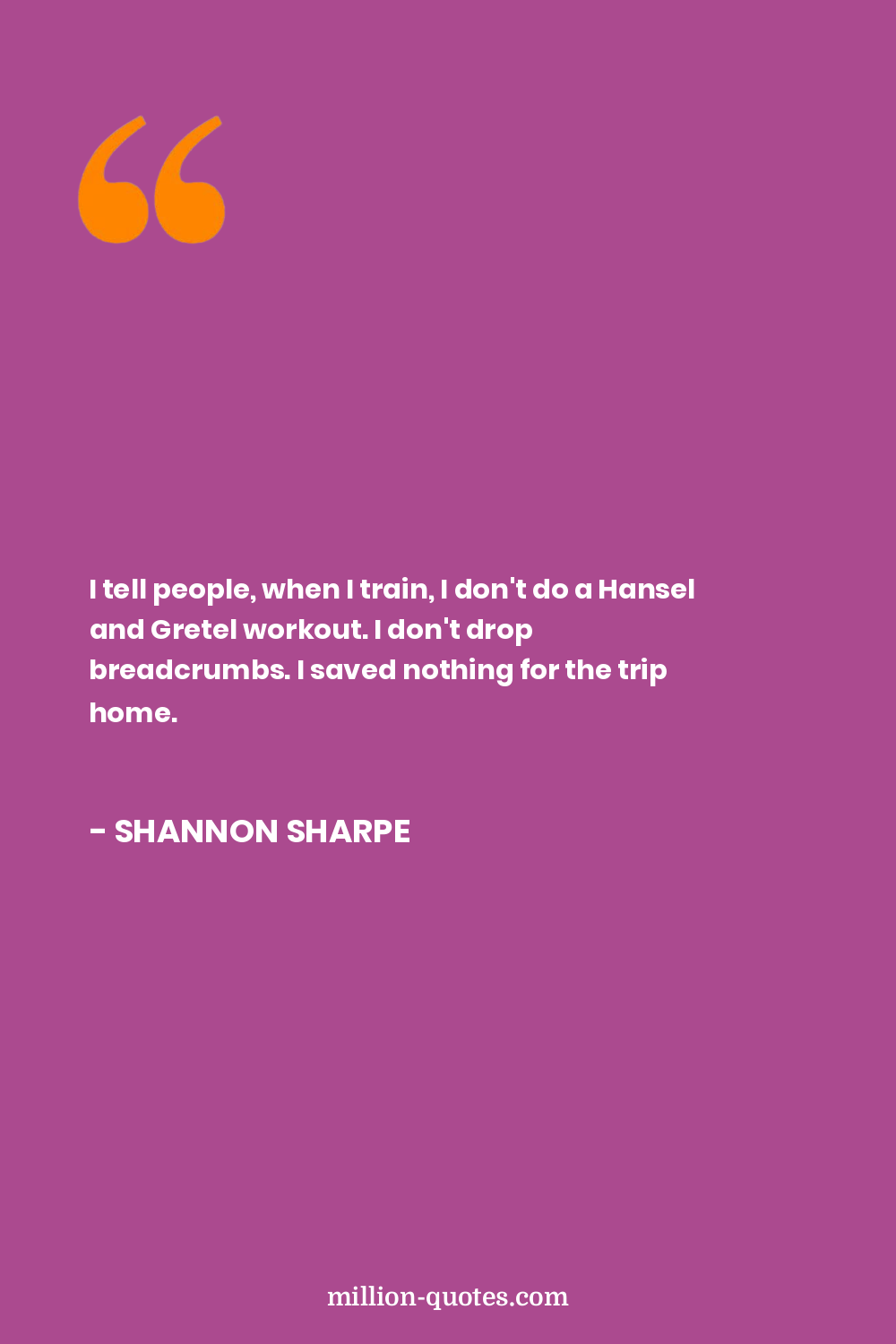 I tell people, when I train, I don't do a Hansel and Gretel workout. I don't drop breadcrumbs. I saved nothing for the trip home.