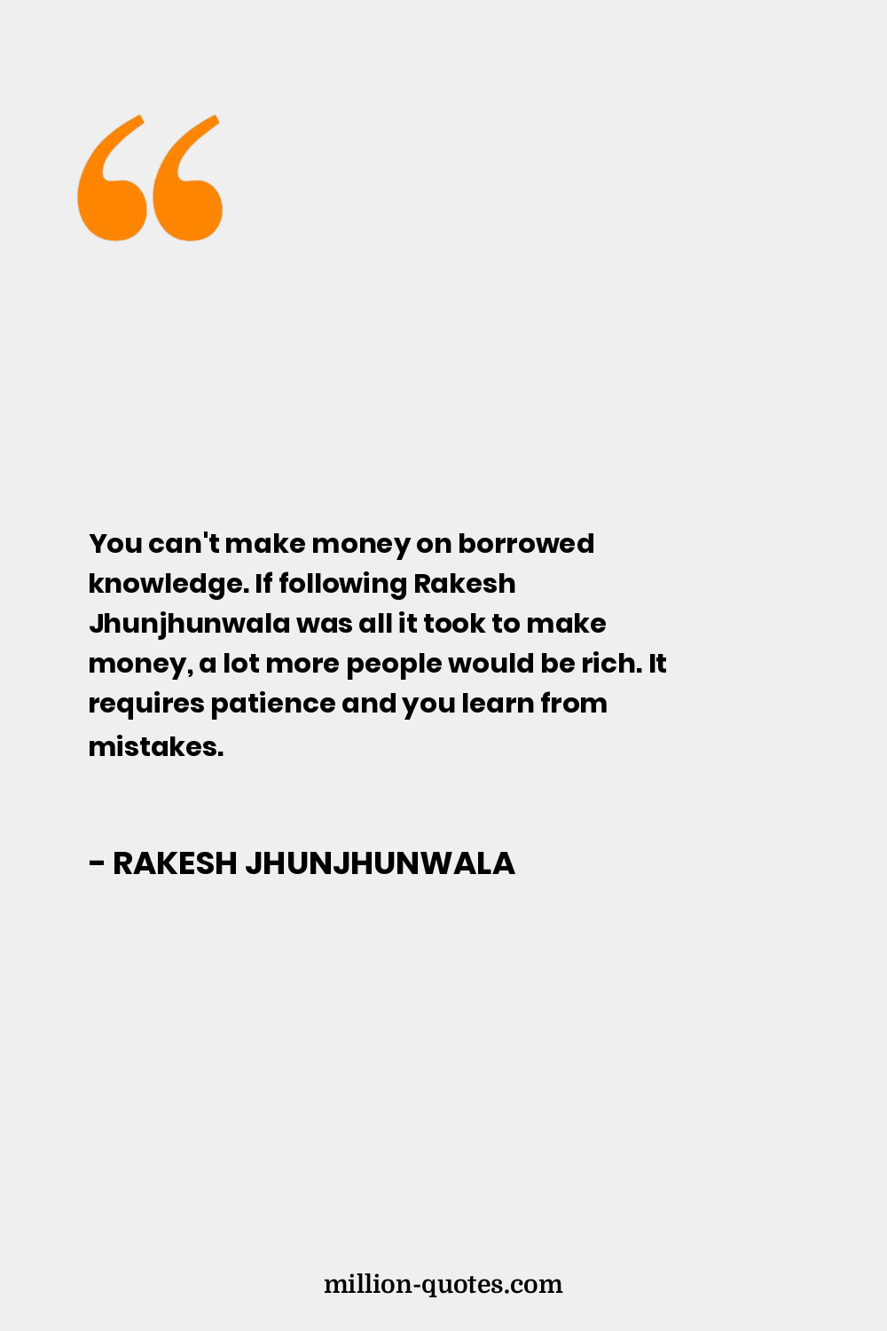 You can't make money on borrowed knowledge. If following Rakesh Jhunjhunwala was all it took to make money, a lot more people would be rich. It requires patience and you learn from mistakes.