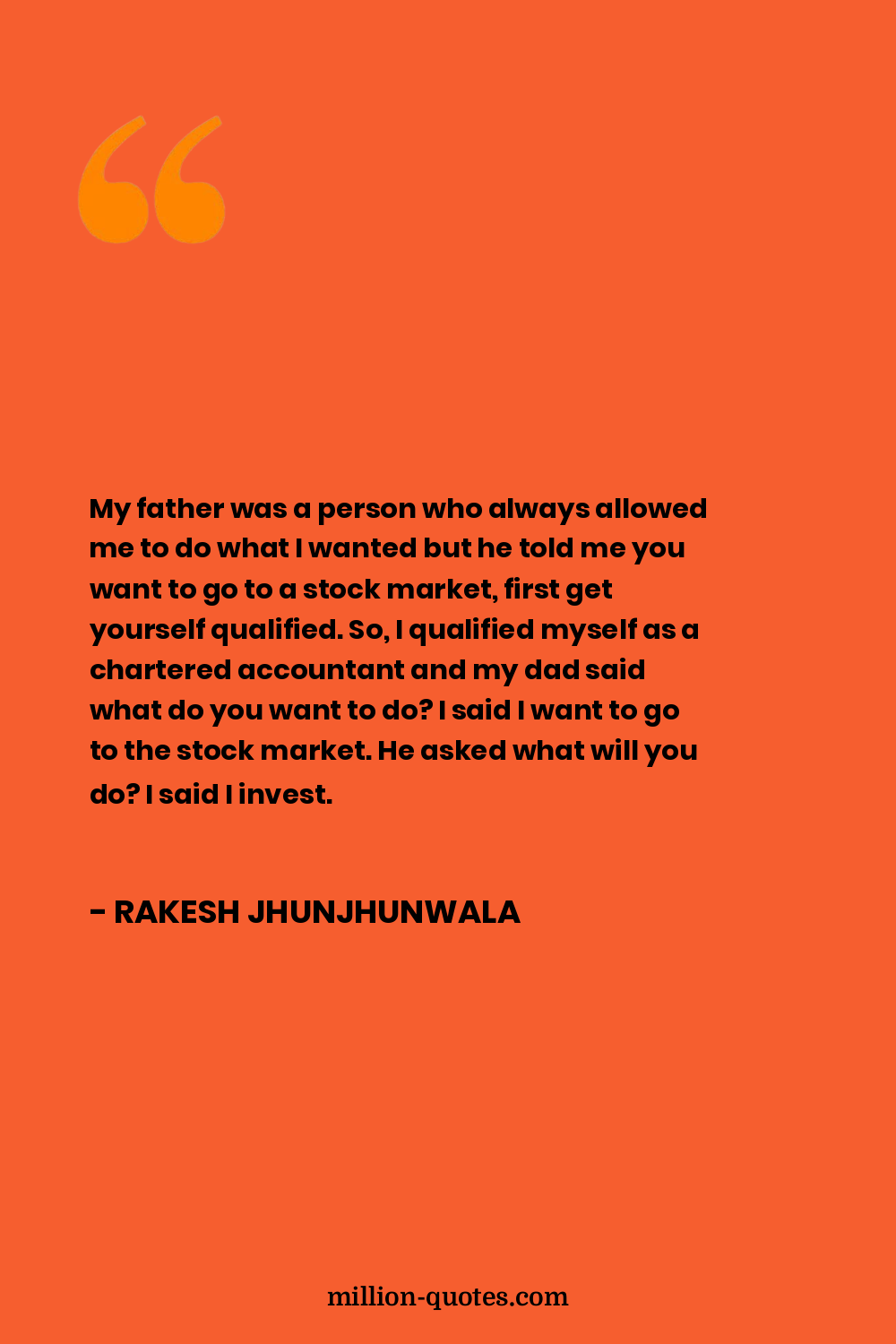 My father was a person who always allowed me to do what I wanted but he told me you want to go to a stock market, first get yourself qualified. So, I qualified myself as a chartered accountant and my dad said what do you want to do? I said I want to go to the stock market. He asked what will you do? I said I invest.